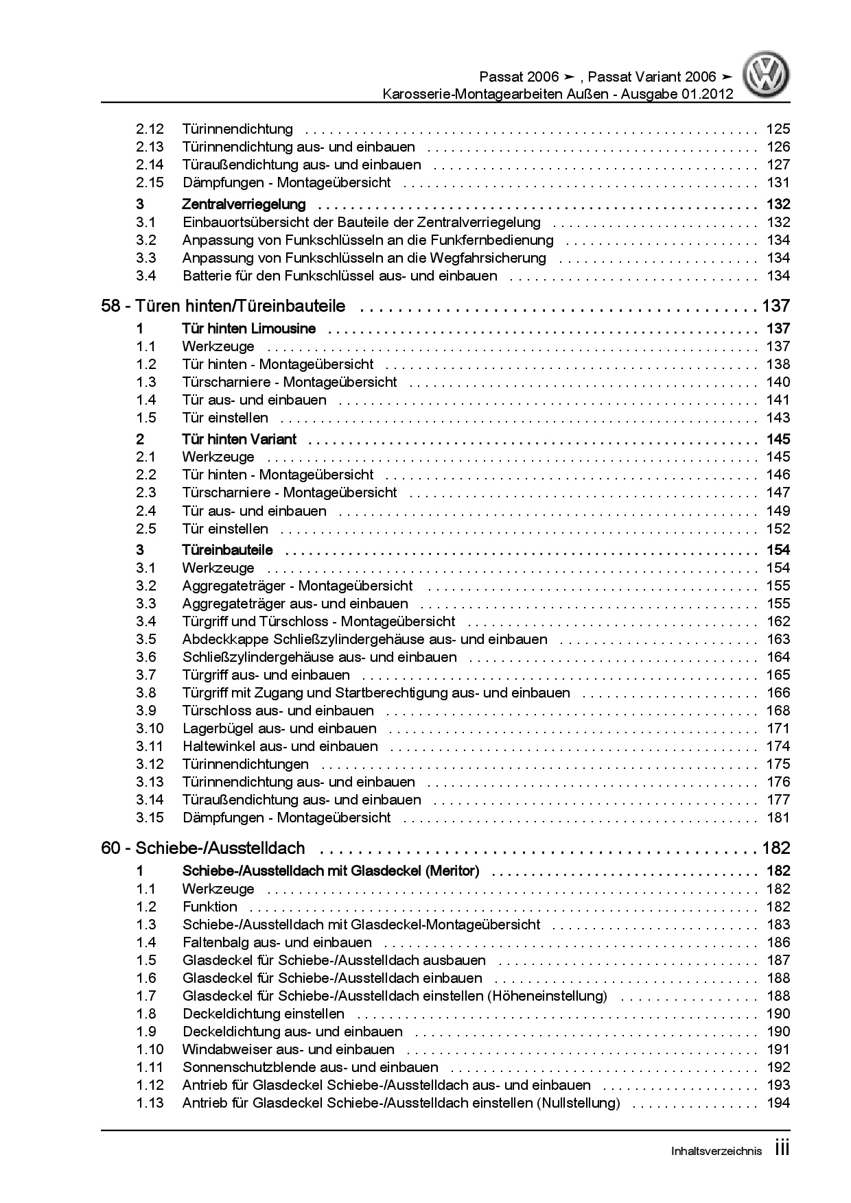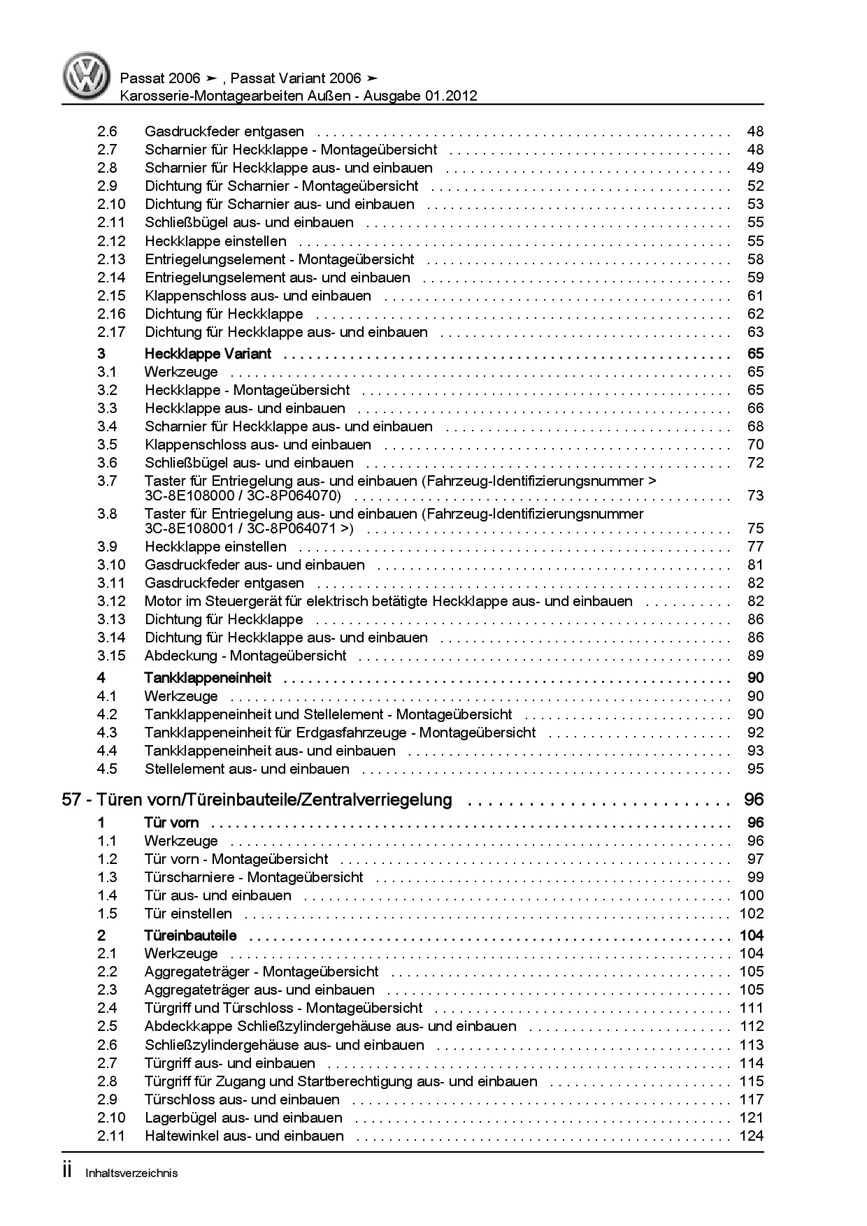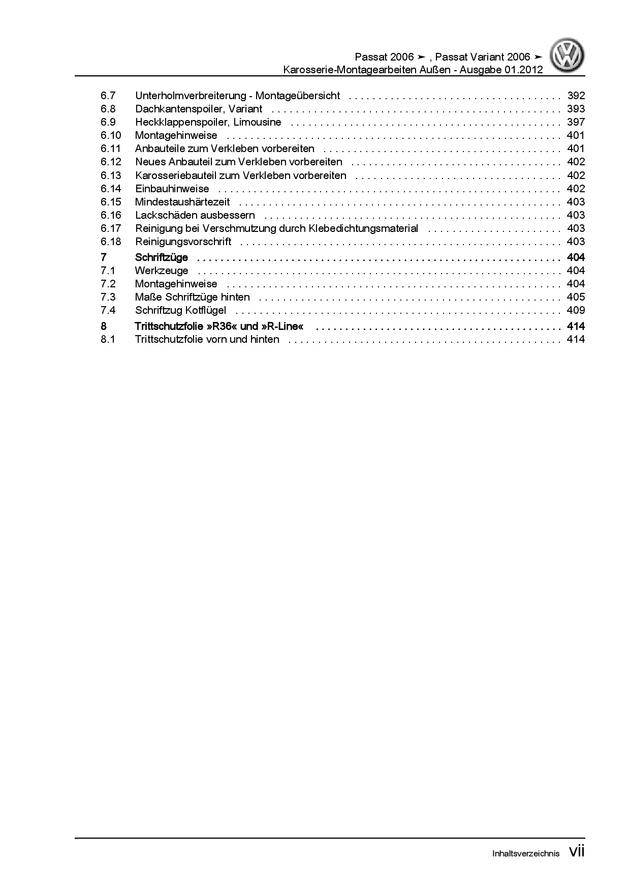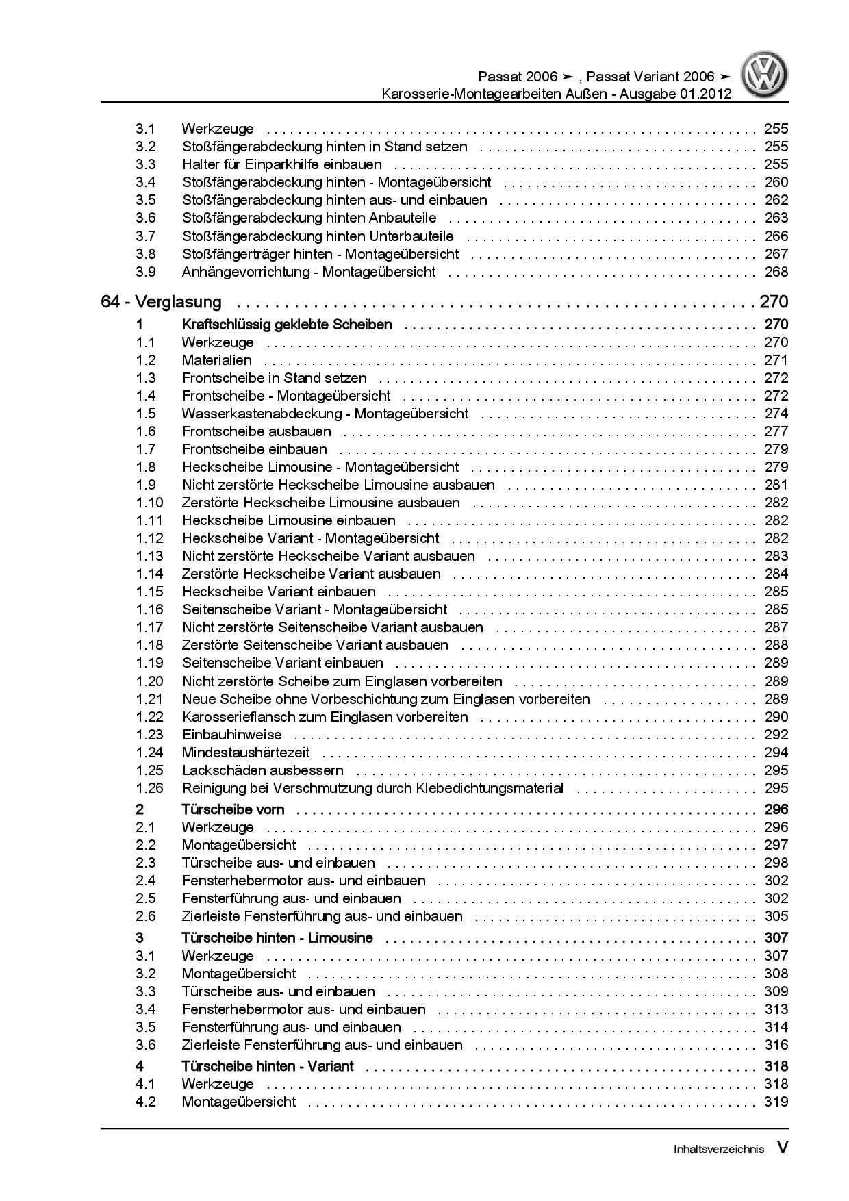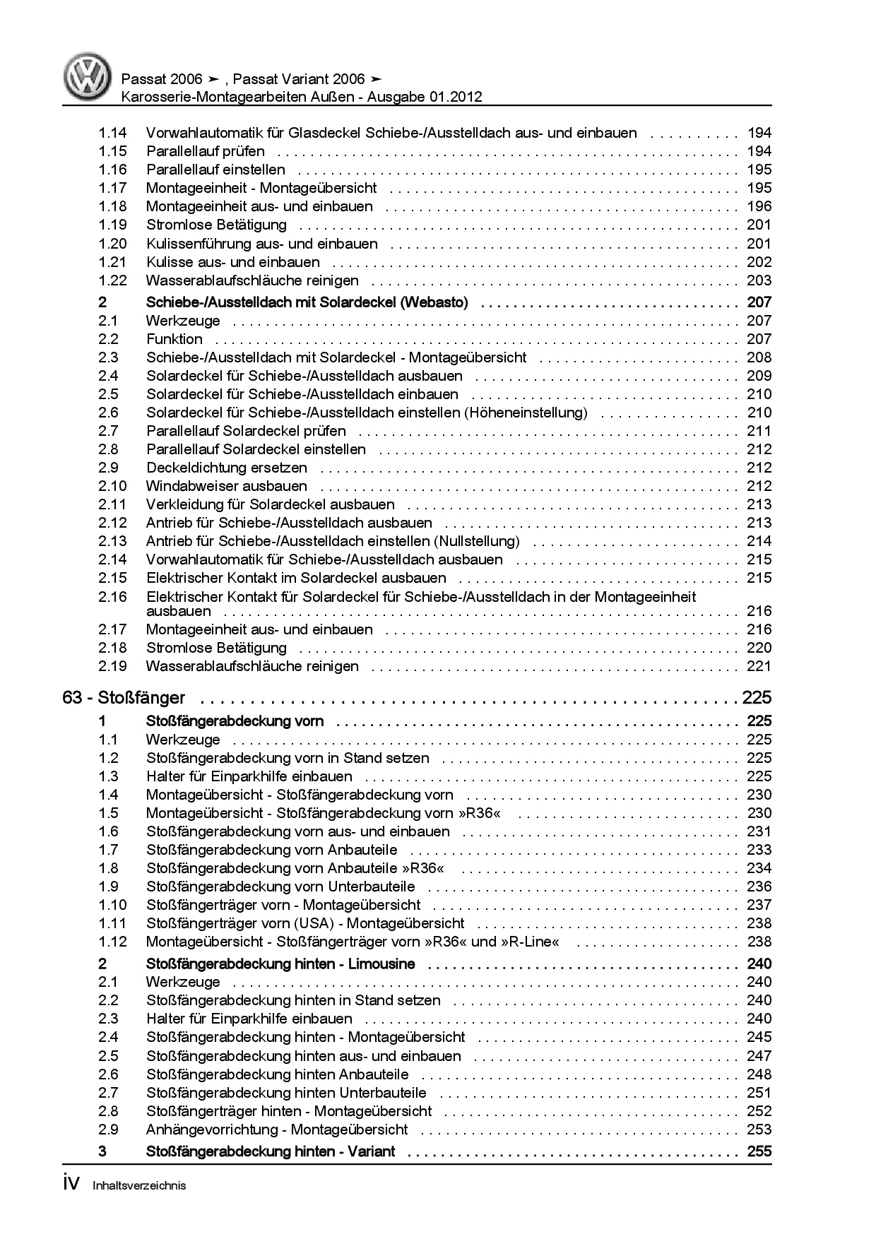 VW Passat 6 Typ 3C 2004-2010 Karosserie Montagearbeiten Außen Reparaturanleitung