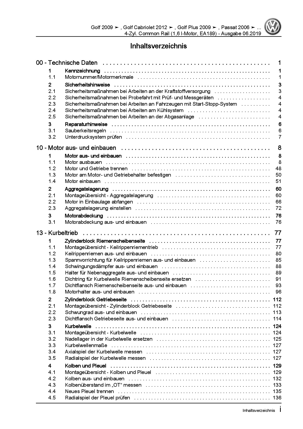 Diese Reparaturanleitung enthält detaillierte Beschreibungen zu Aus- und Einbauarbeiten, Einstell- und Prüfarbeiten sowie zahlreiche Grafiken, Bilder und Explosionszeichnungen. Die Kunststoffringbindung ermöglicht ein problemloses Umschlagen bis zu 180°.