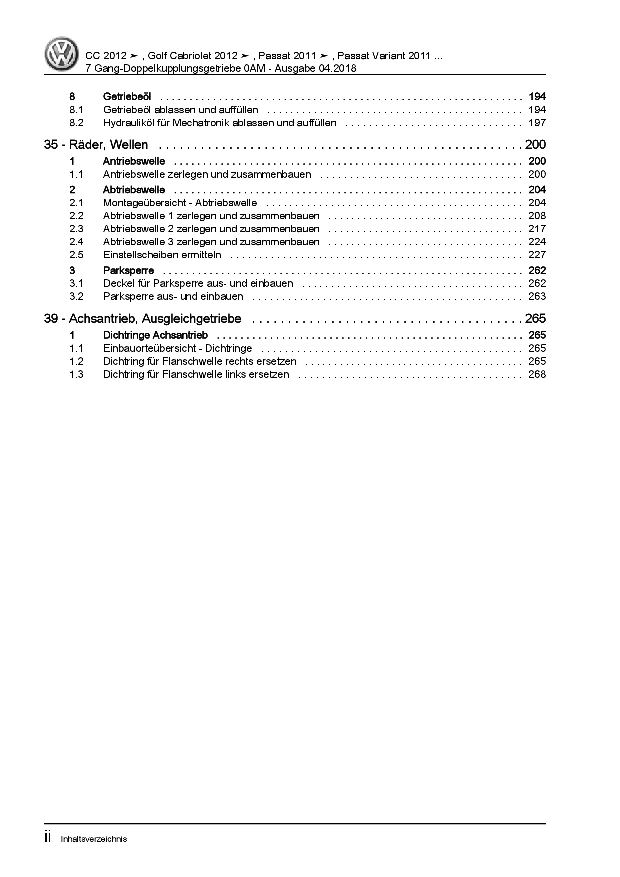 VW Passat 7 3C (10-14) 7 Gang Automatikgetriebe DSG DKG 0AM Reparaturanleitung