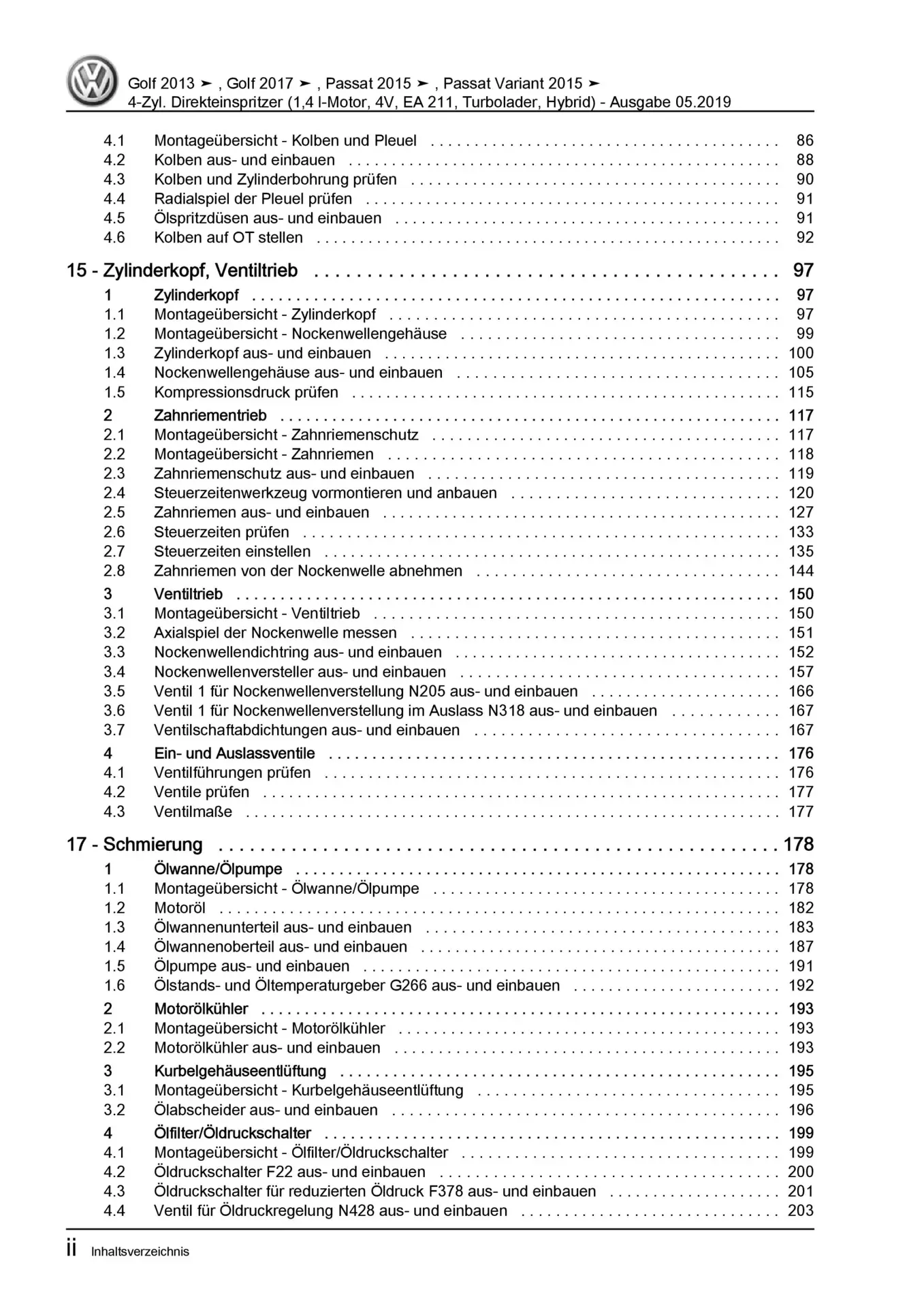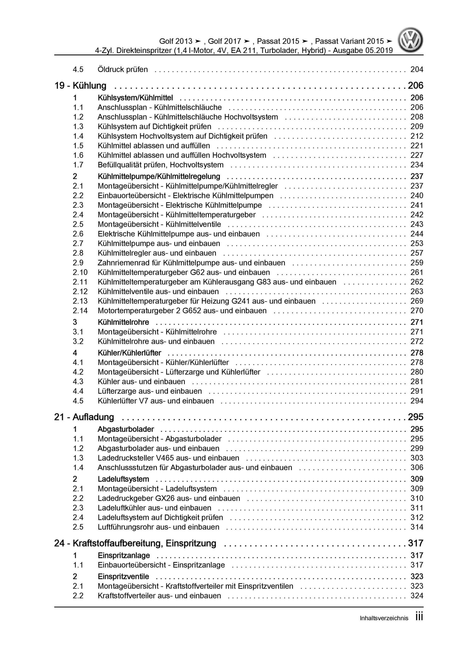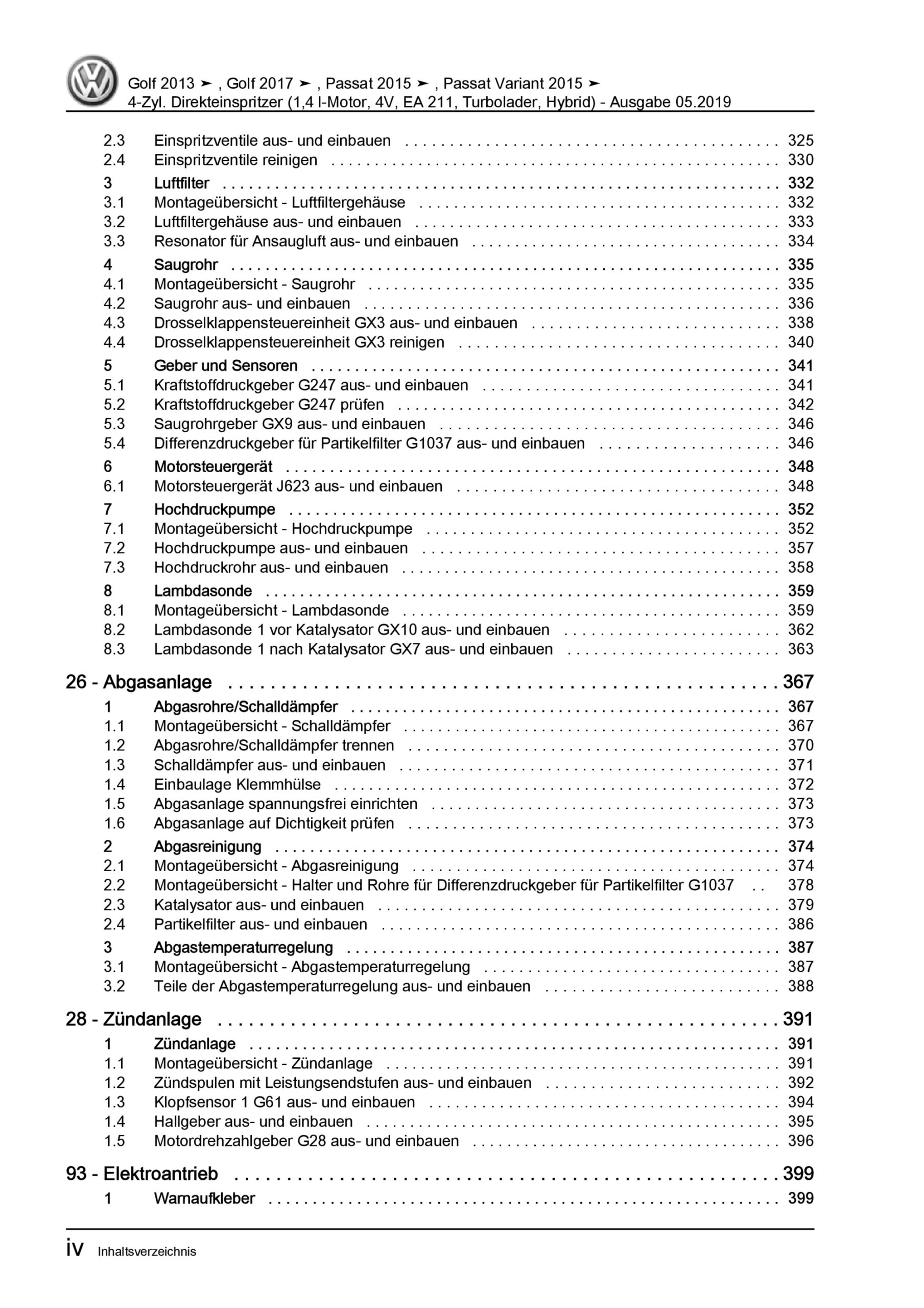 VW Passat 8 3G 2014-2019 4-Zyl. 1,4l Benzinmotor 150-156 PS Reparaturanleitung