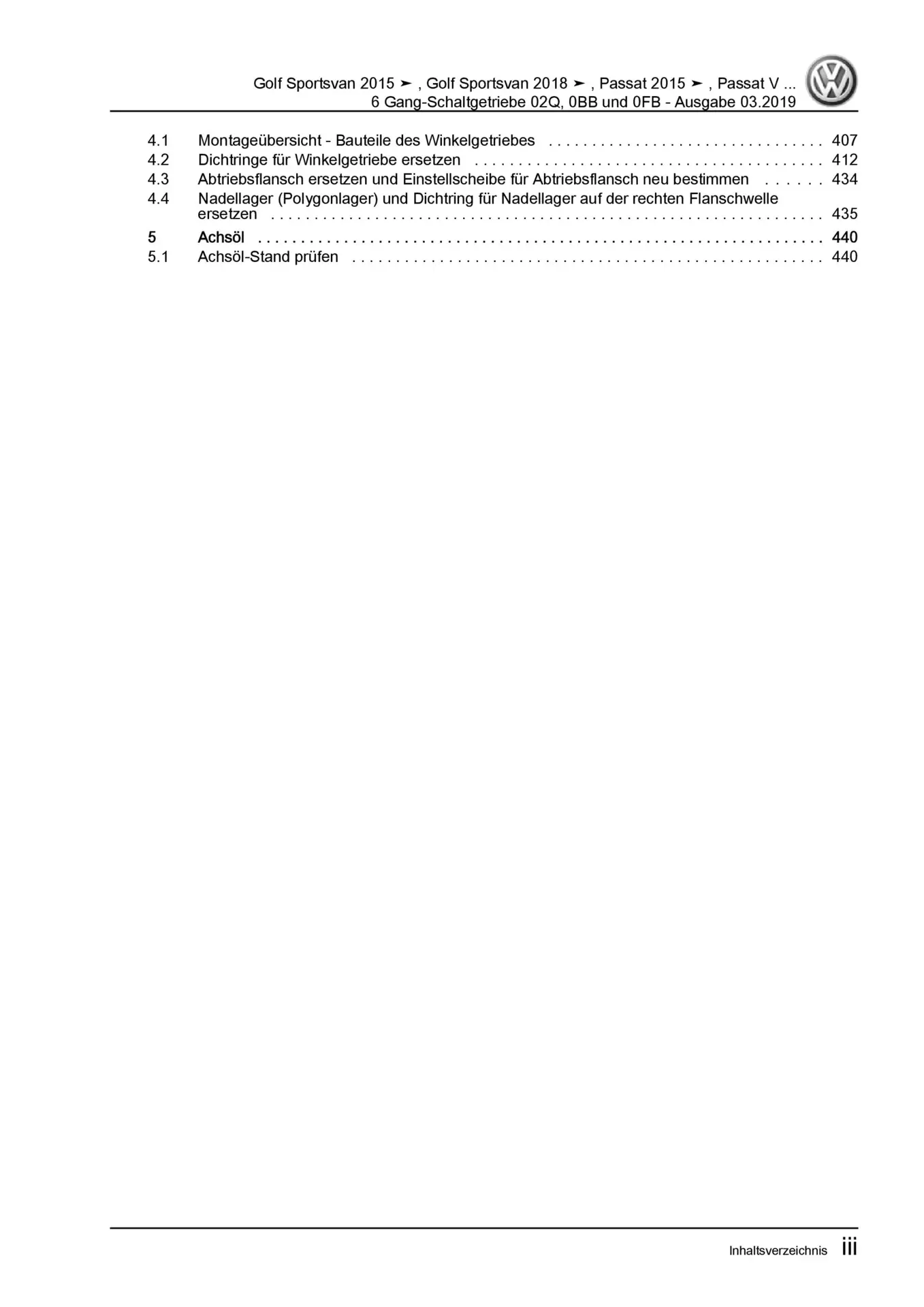 VW Passat 8 3G 2014-2019 6 Gang Schaltgetriebe 02Q 0BB 0FB Reparaturanleitung