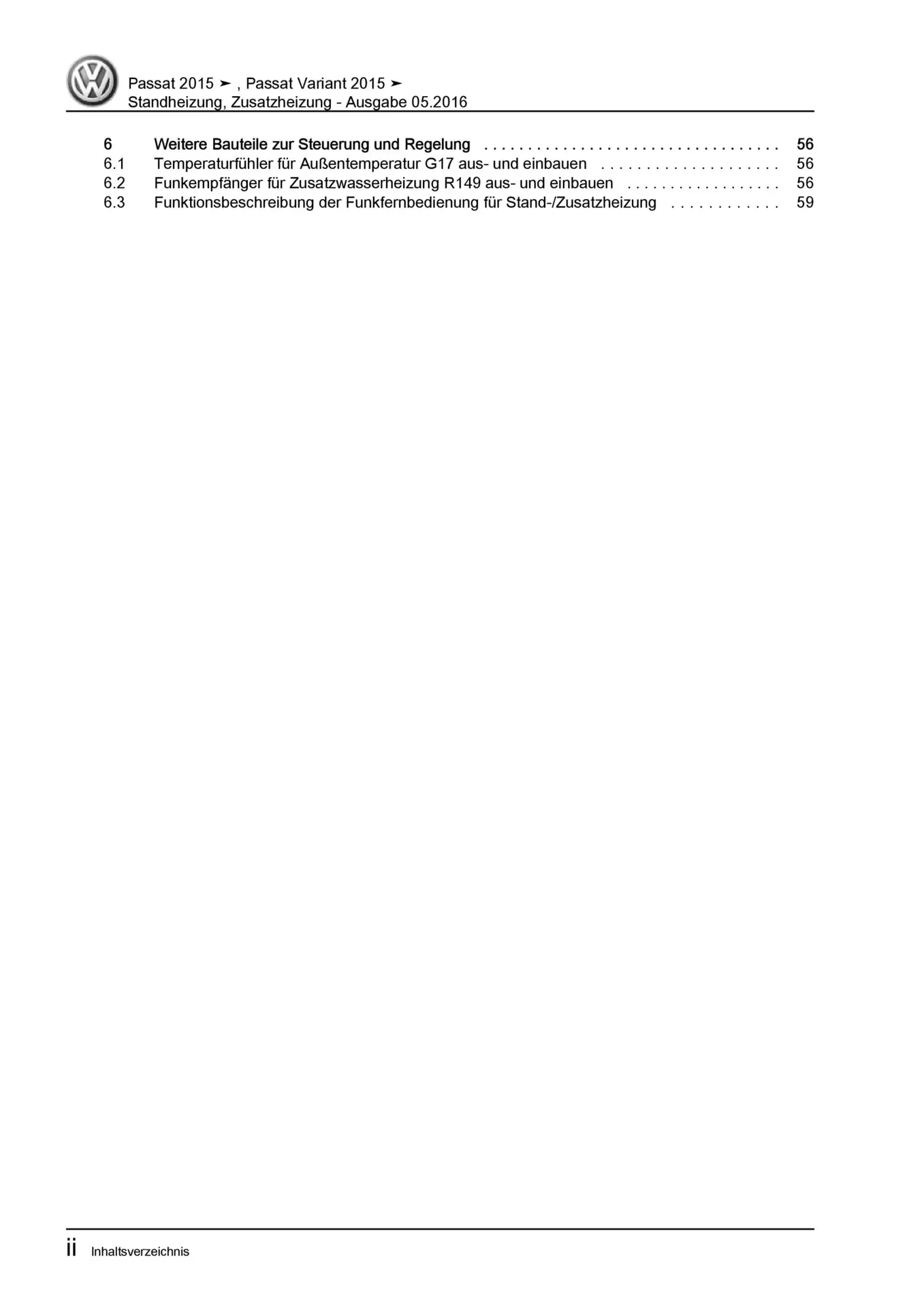 VW Passat 8 Typ 3G 2014-2019 Standheizung Zusatzheizung Reparaturanleitung
