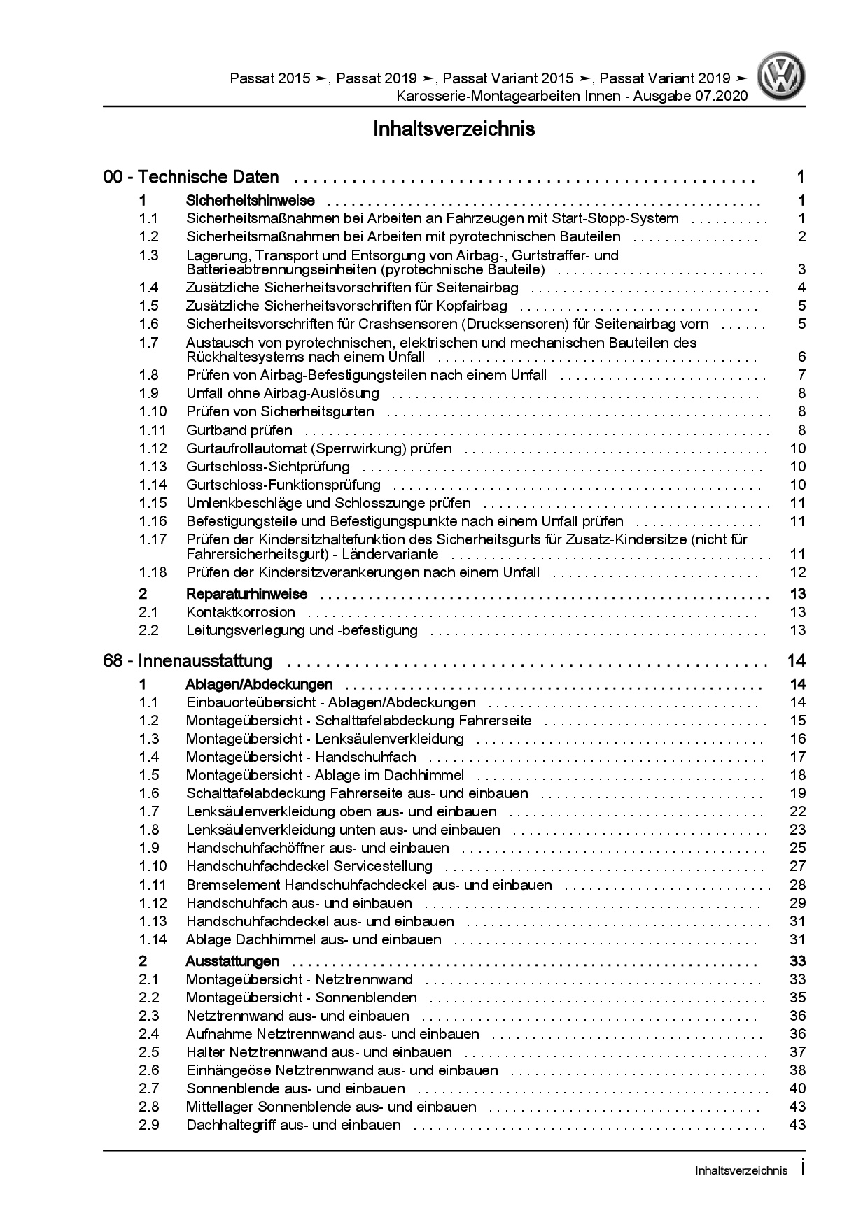 Offizieller VW Passat 8 inkl. Variant (B8) Reparaturleitfaden