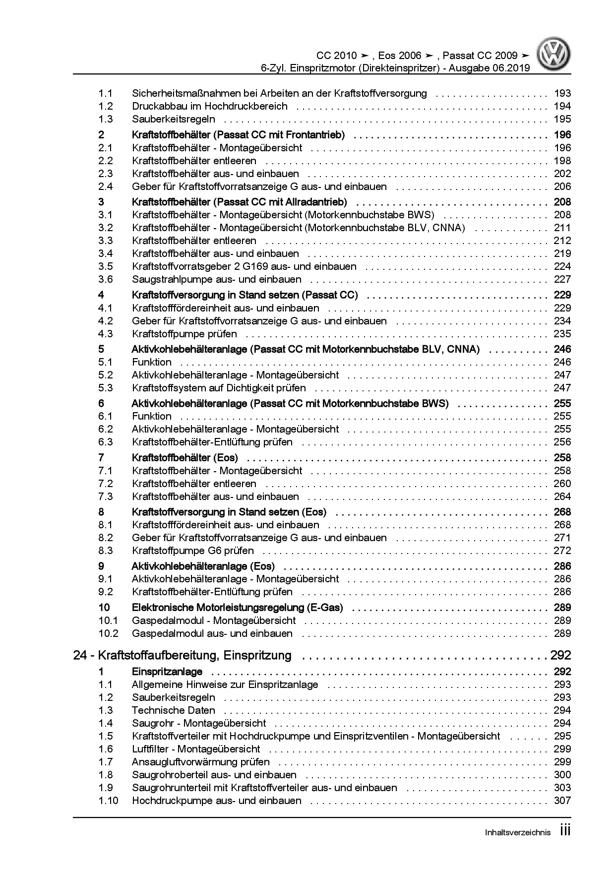 Diese Reparaturanleitung enthält detaillierte Beschreibungen zu Aus- und Einbauarbeiten, Einstell- und Prüfarbeiten sowie zahlreiche Grafiken, Bilder und Explosionszeichnungen. Die Kunststoffringbindung ermöglicht ein problemloses Umschlagen bis zu 180°.
