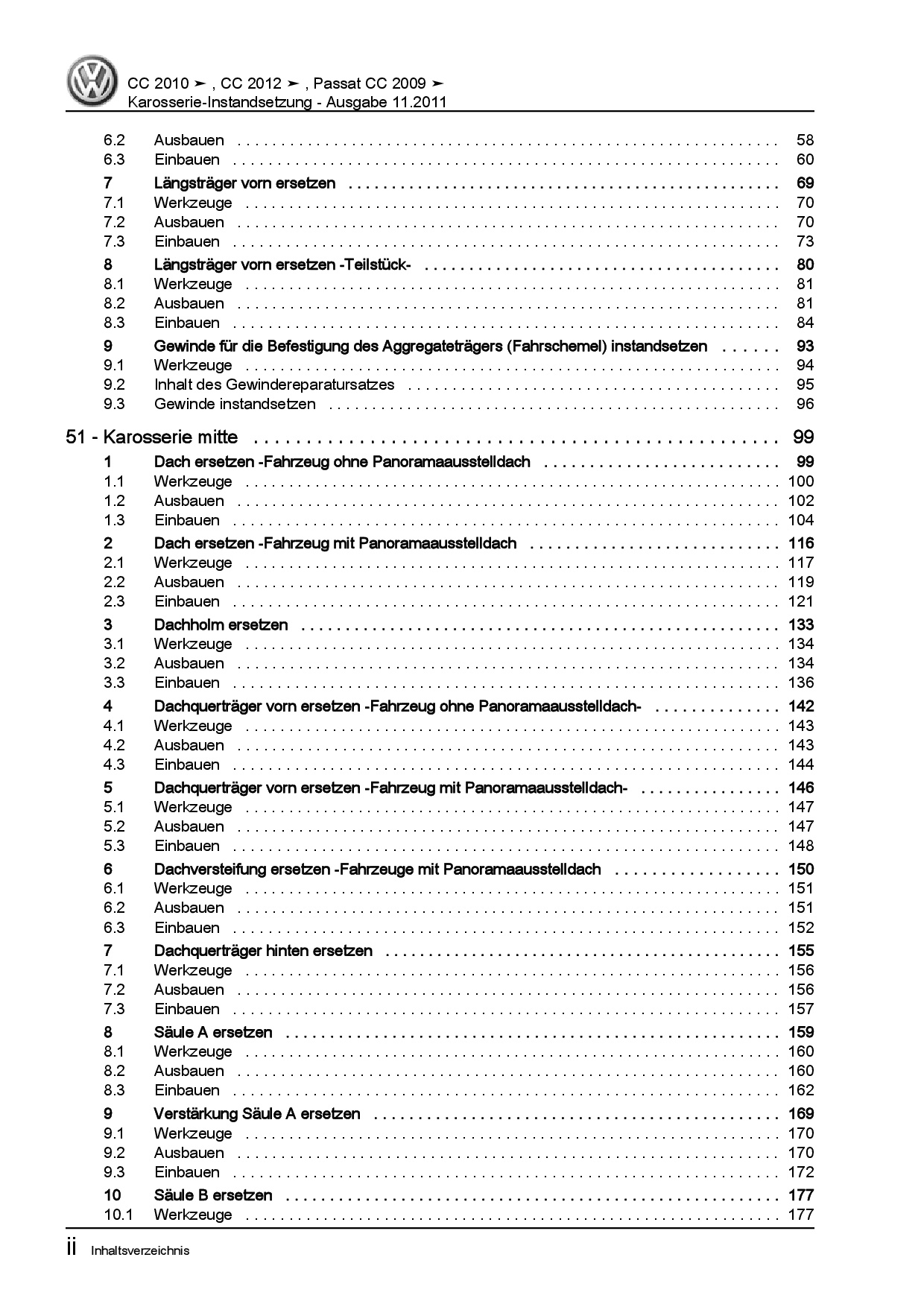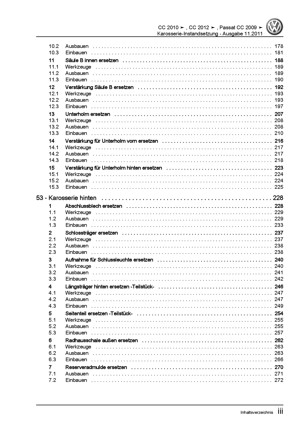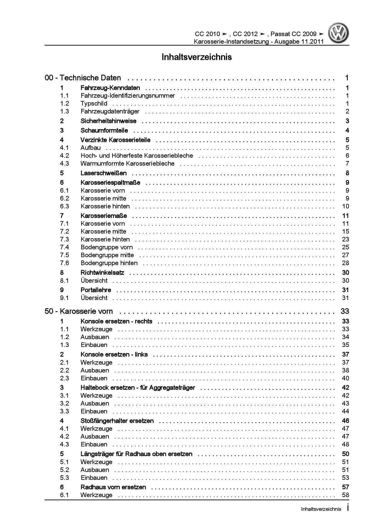 VW Passat CC 35 2008-2016 Karosserie Unfall Instandsetzung Reparaturanleitung