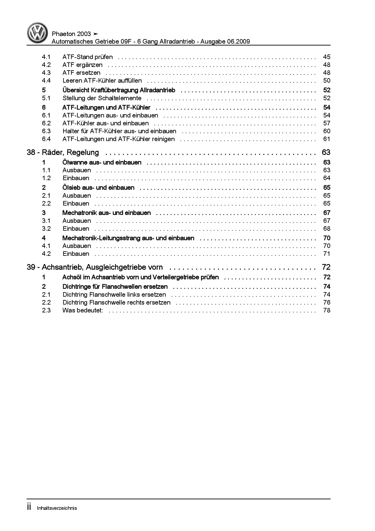 VW Phaeton 3D 2001-2016 6 Gang Automatikgetriebe 4WD 09F Reparaturanleitung