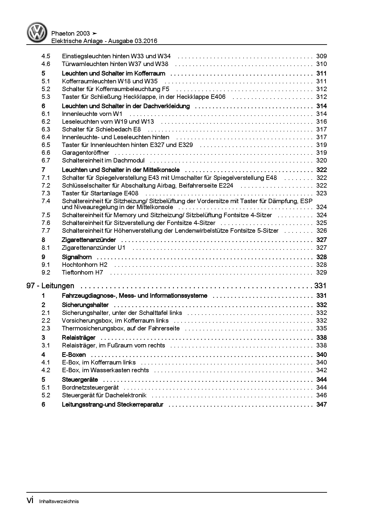 VW Phaeton 3D 2001-2016 Elektrische Anlage Elektrik Systeme Reparaturanleitung