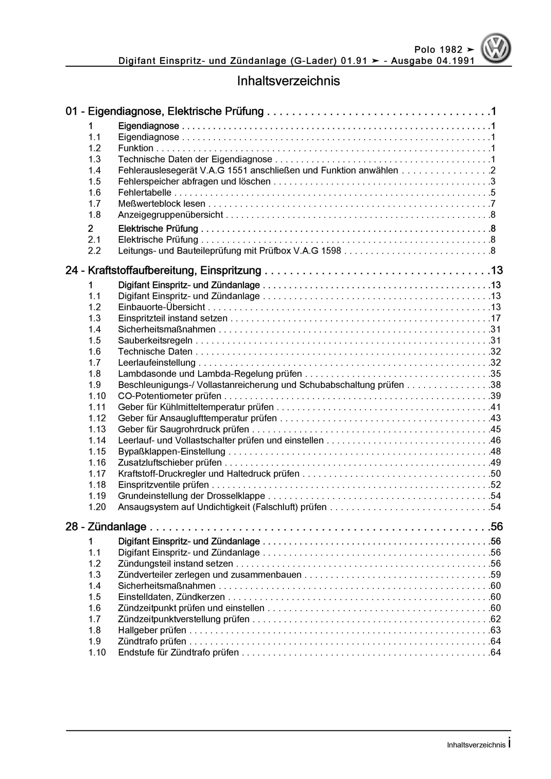 VW Polo 2 86C (81-94) Digifant Einspritz- und Zündanlage Reparaturanleitung
