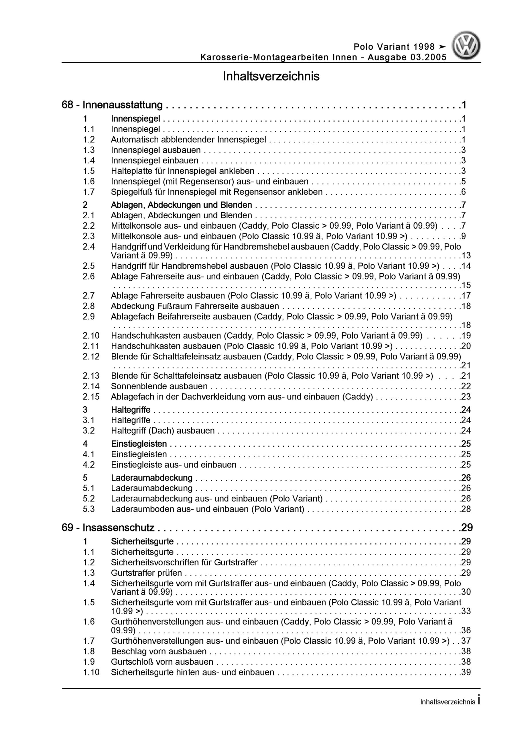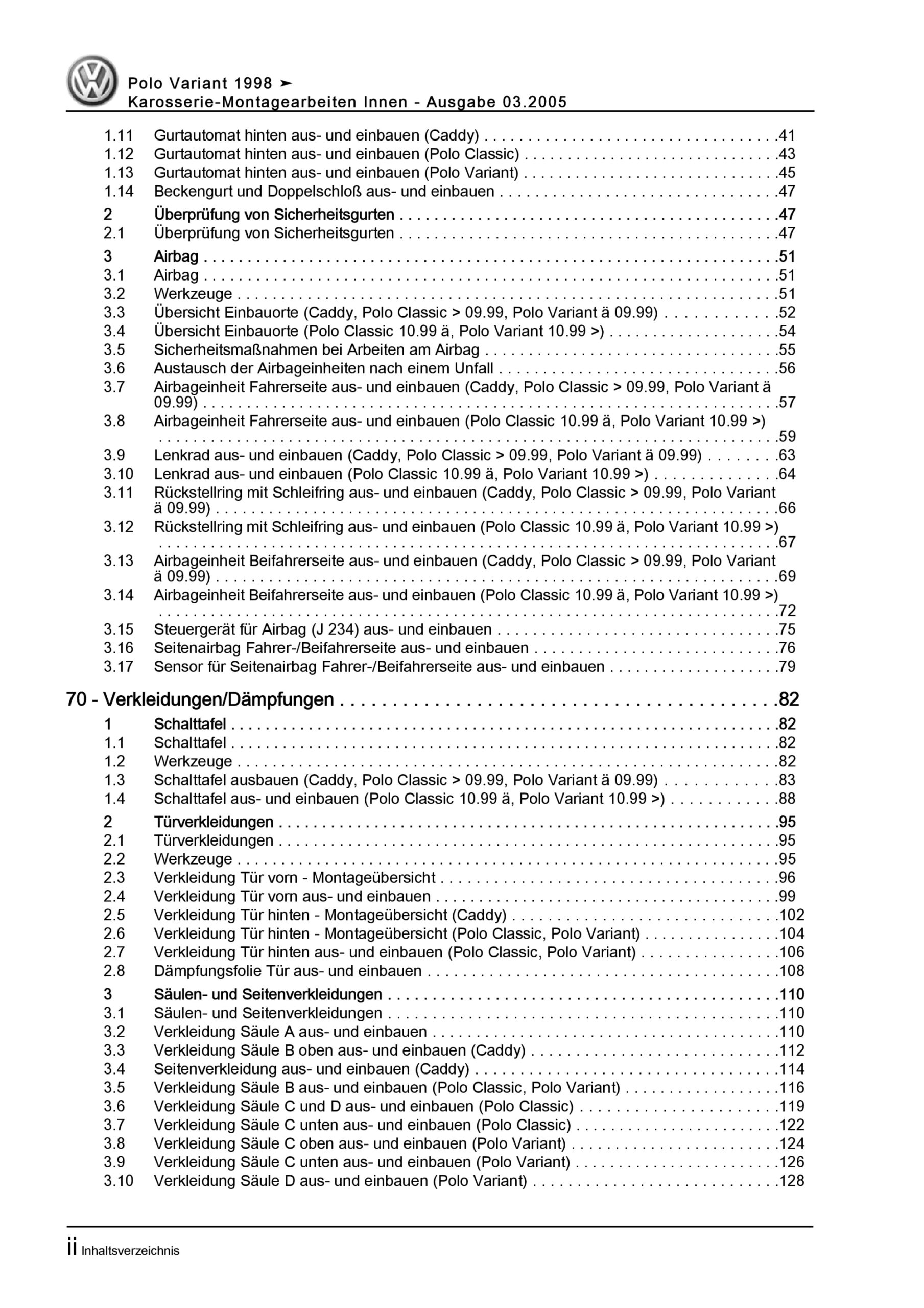 Offizieller VW Polo III Variant, Kombi Reparaturleitfaden