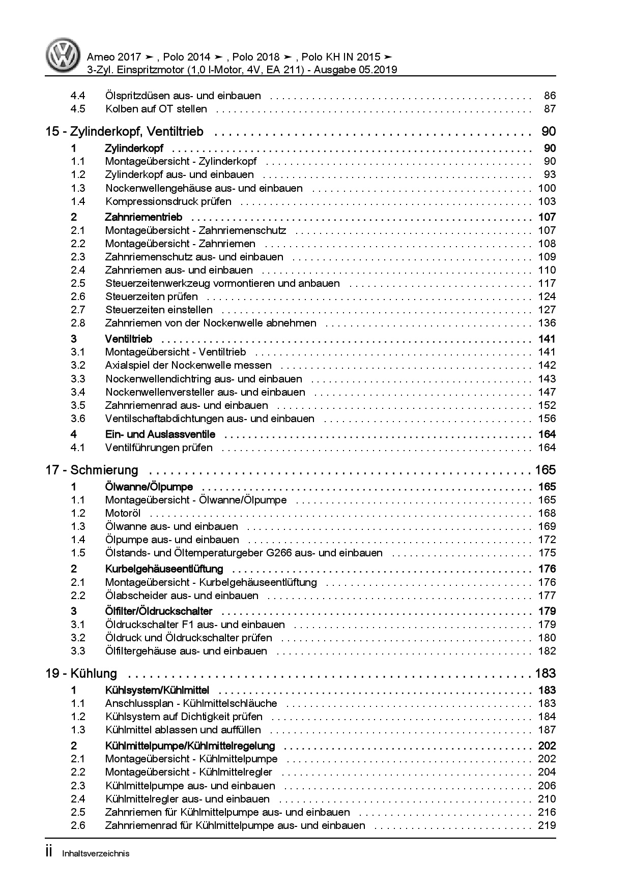 Diese Reparaturanleitung enthält detaillierte Beschreibungen zu Aus- und Einbauarbeiten, Einstell- und Prüfarbeiten sowie zahlreiche Grafiken, Bilder und Explosionszeichnungen. Die Kunststoffringbindung ermöglicht ein problemloses Umschlagen bis zu 180°.