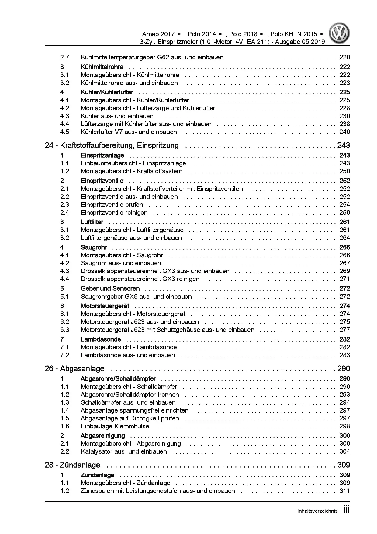 Diese Reparaturanleitung enthält detaillierte Beschreibungen zu Aus- und Einbauarbeiten, Einstell- und Prüfarbeiten sowie zahlreiche Grafiken, Bilder und Explosionszeichnungen. Die Kunststoffringbindung ermöglicht ein problemloses Umschlagen bis zu 180°.