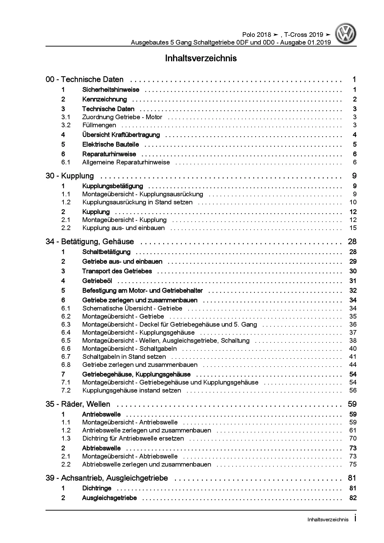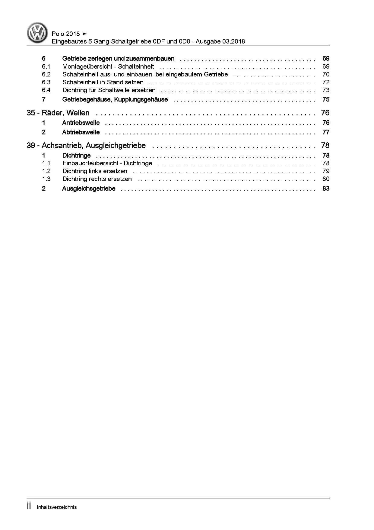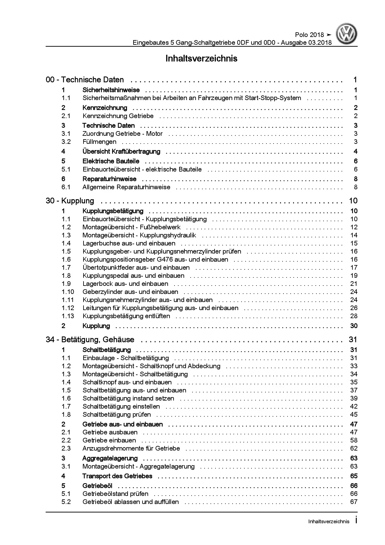 VW Polo Typ AW ab 2018 5 Gang Schaltgetriebe 0DF 0D0 Kupplung Reparaturanleitung