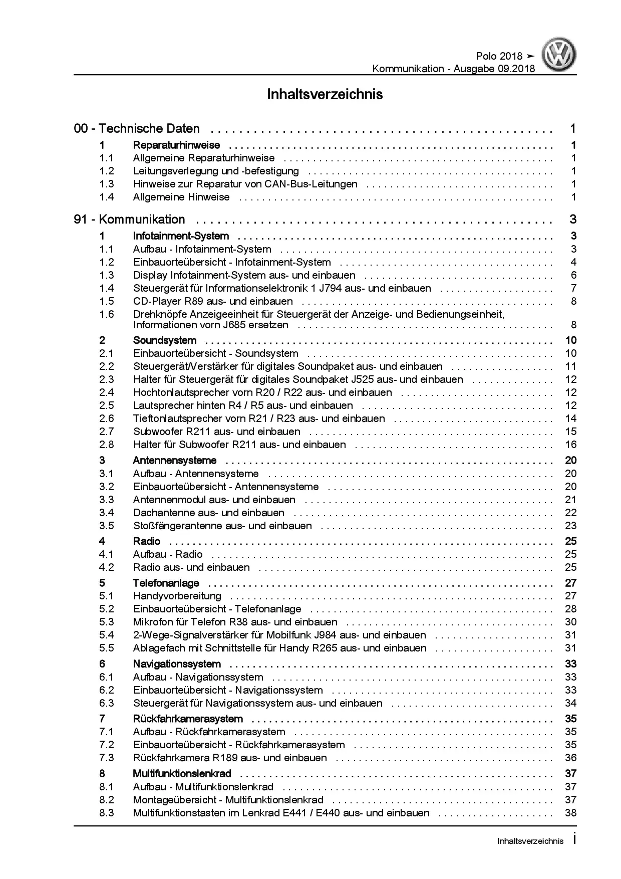 Diese Reparaturanleitung enthält detaillierte Beschreibungen zu Aus- und Einbauarbeiten, Einstell- und Prüfarbeiten sowie zahlreiche Grafiken, Bilder und Explosionszeichnungen. Die Kunststoffringbindung ermöglicht ein problemloses Umschlagen bis zu 180°.