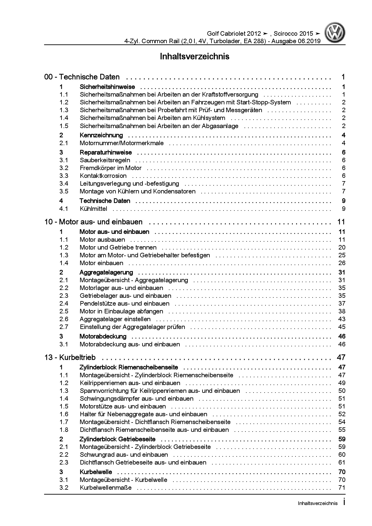 Diese Reparaturanleitung enthält detaillierte Beschreibungen zu Aus- und Einbauarbeiten, Einstell- und Prüfarbeiten sowie zahlreiche Grafiken, Bilder und Explosionszeichnungen. Die Kunststoffringbindung ermöglicht ein problemloses Umschlagen bis zu 180°.