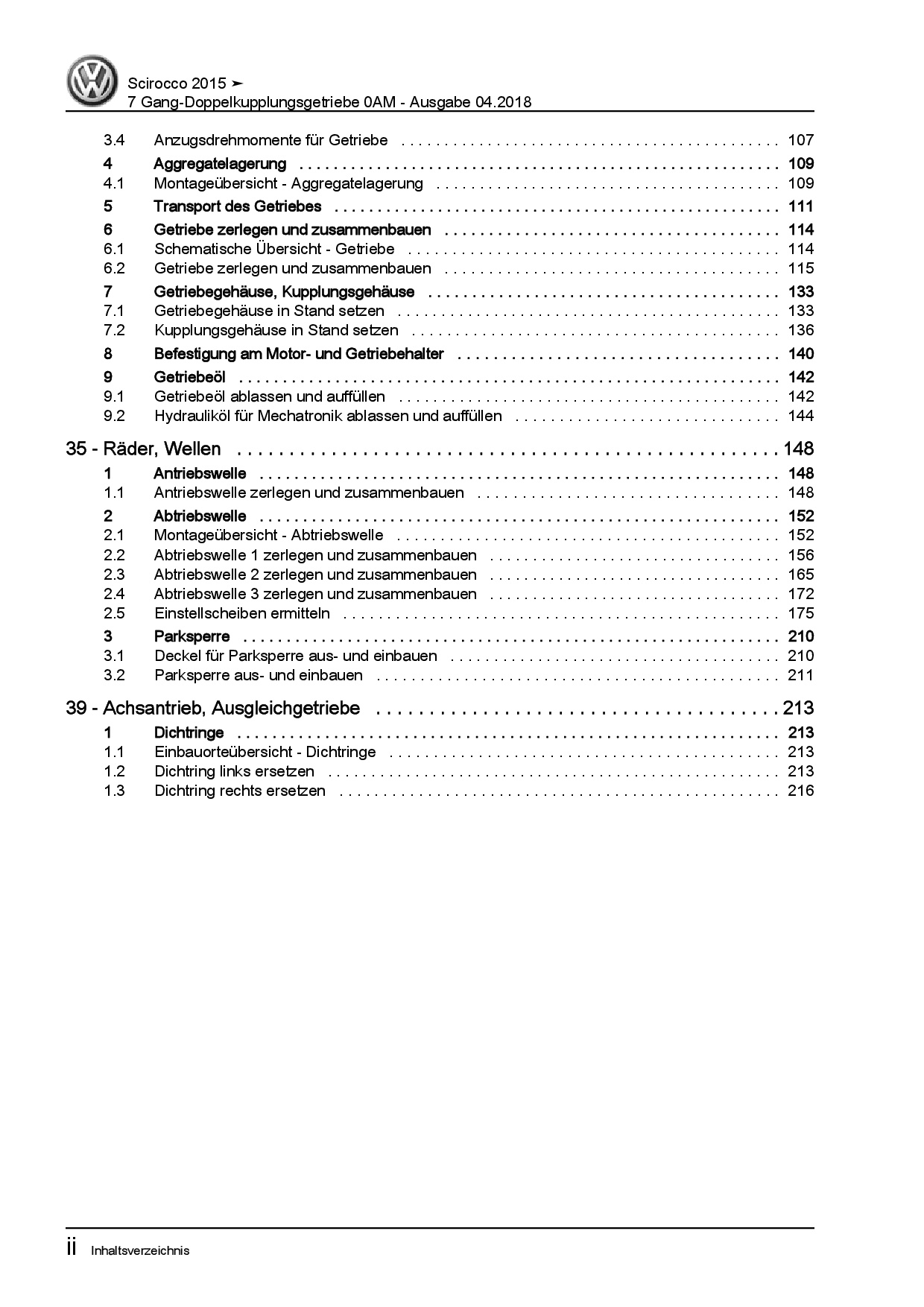 VW Scirocco 13 (14-17) 7 Gang Automatikgetriebe 0AM DSG DKG Reparaturanleitung