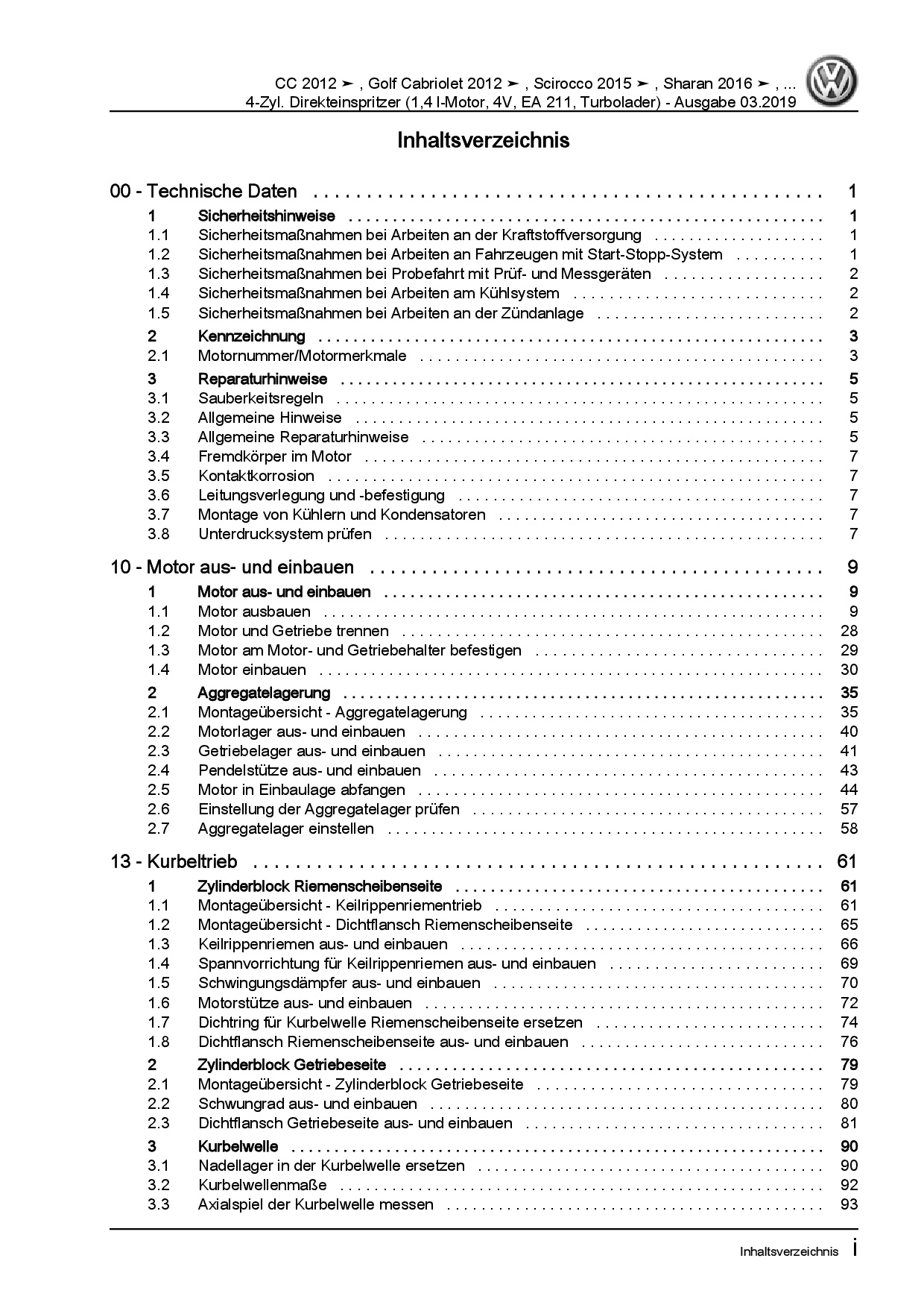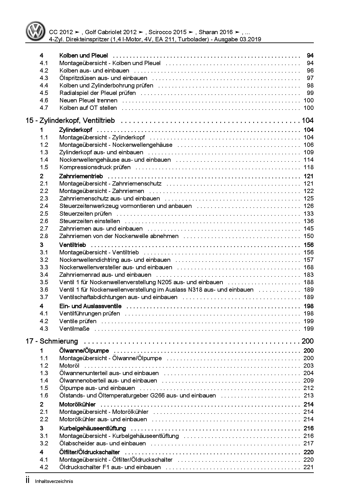 Diese Reparaturanleitung enthält detaillierte Beschreibungen zu Aus- und Einbauarbeiten, Einstell- und Prüfarbeiten sowie zahlreiche Grafiken, Bilder und Explosionszeichnungen. Die Kunststoffringbindung ermöglicht ein problemloses Umschlagen bis zu 180°.