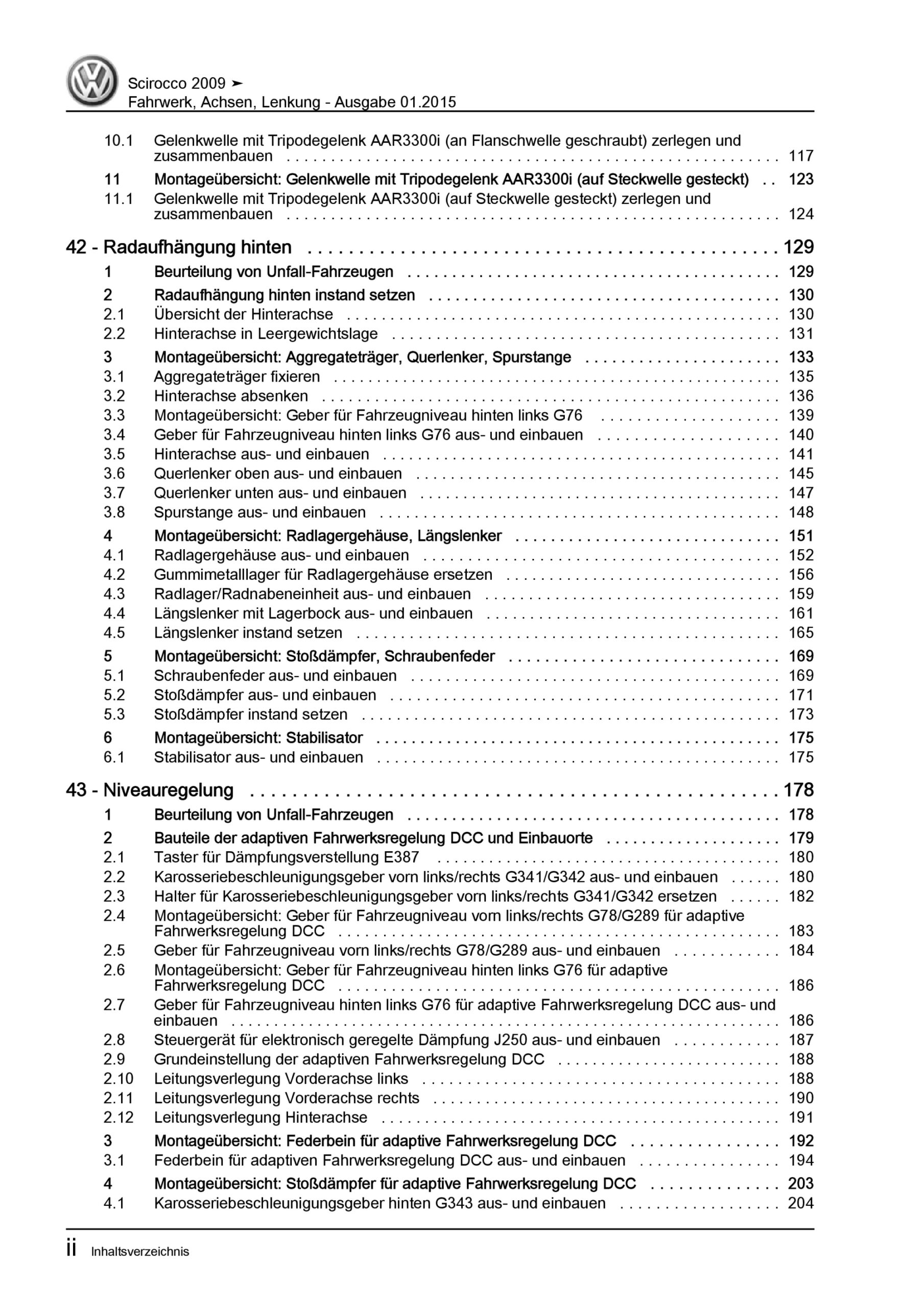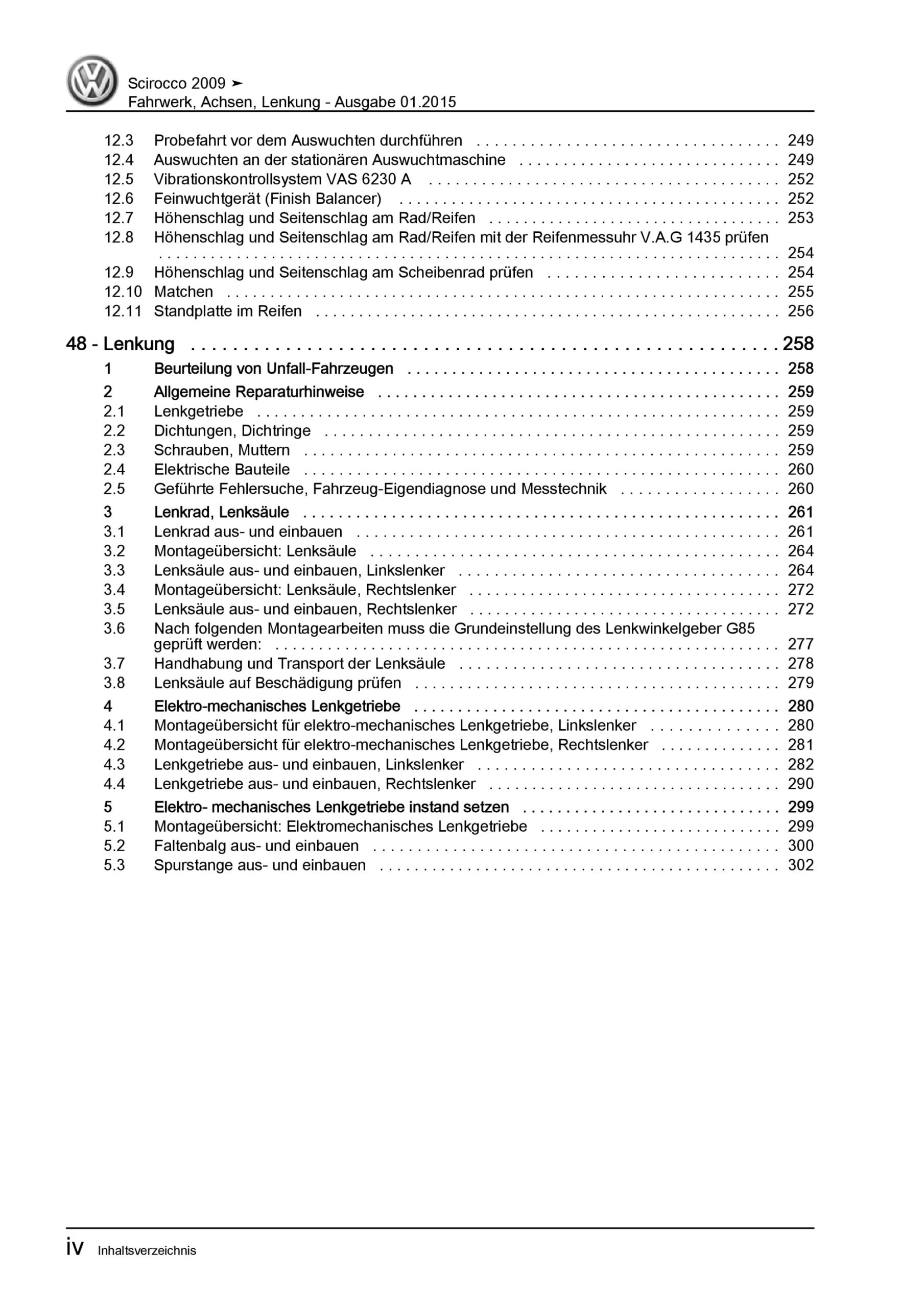 VW Scirocco Typ 13 2008-2014 Fahrwerk Achsen Lenkung Reparaturanleitung