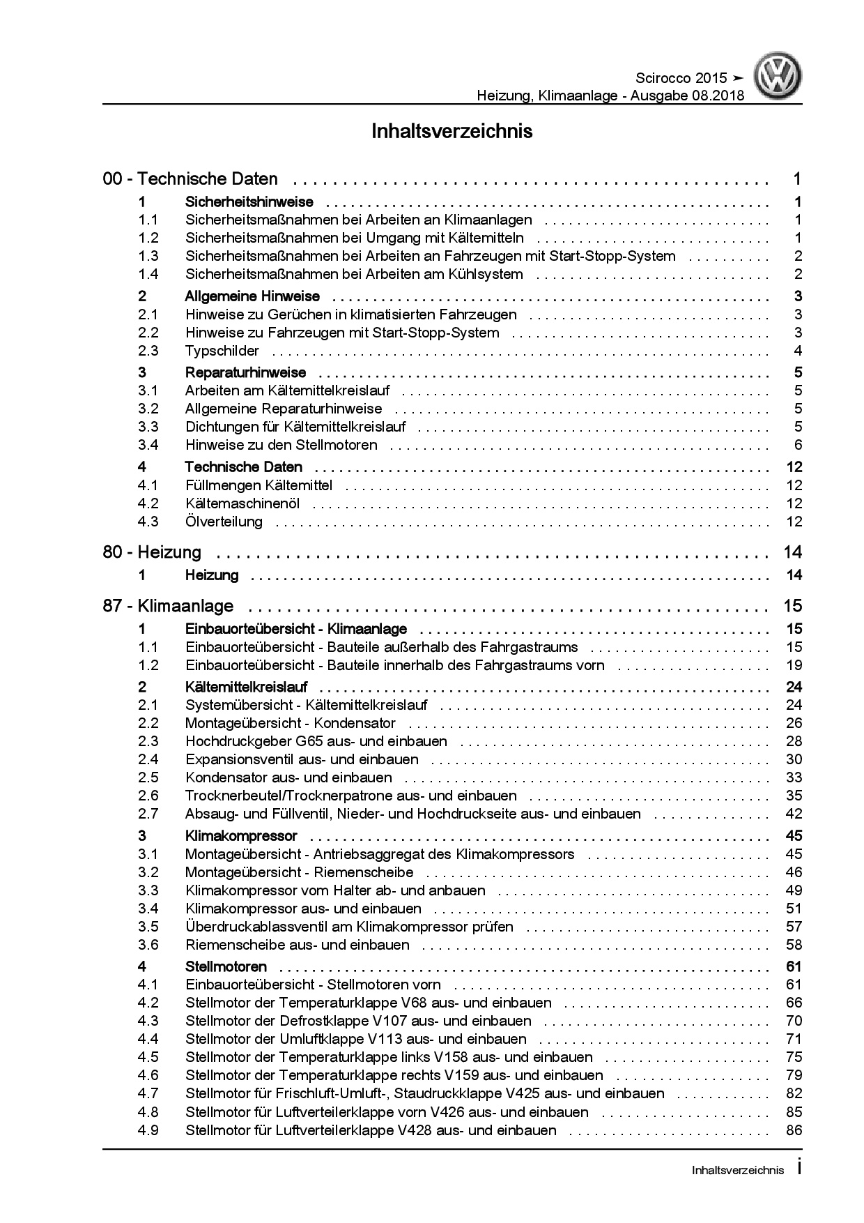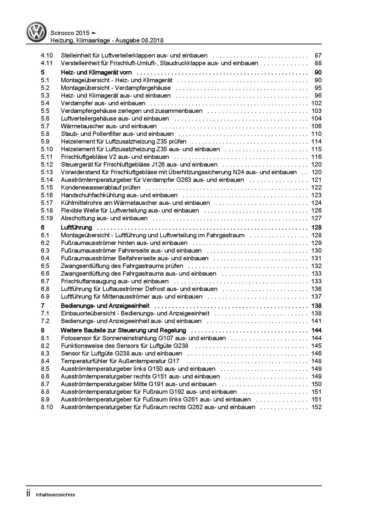 VW Scirocco Typ 13 2014-2017 Heizung Belüftung Klimaanlage Reparaturanleitung
