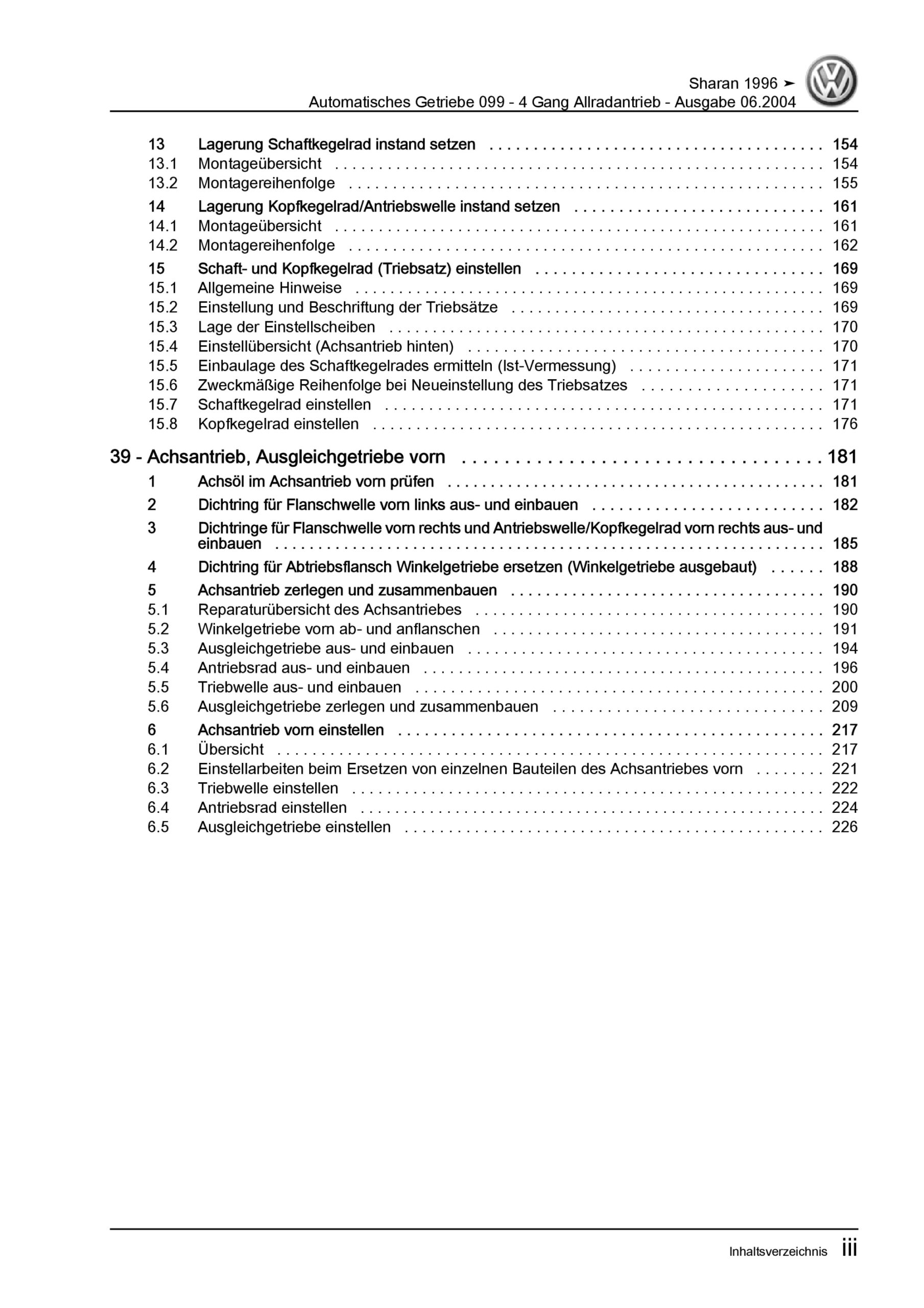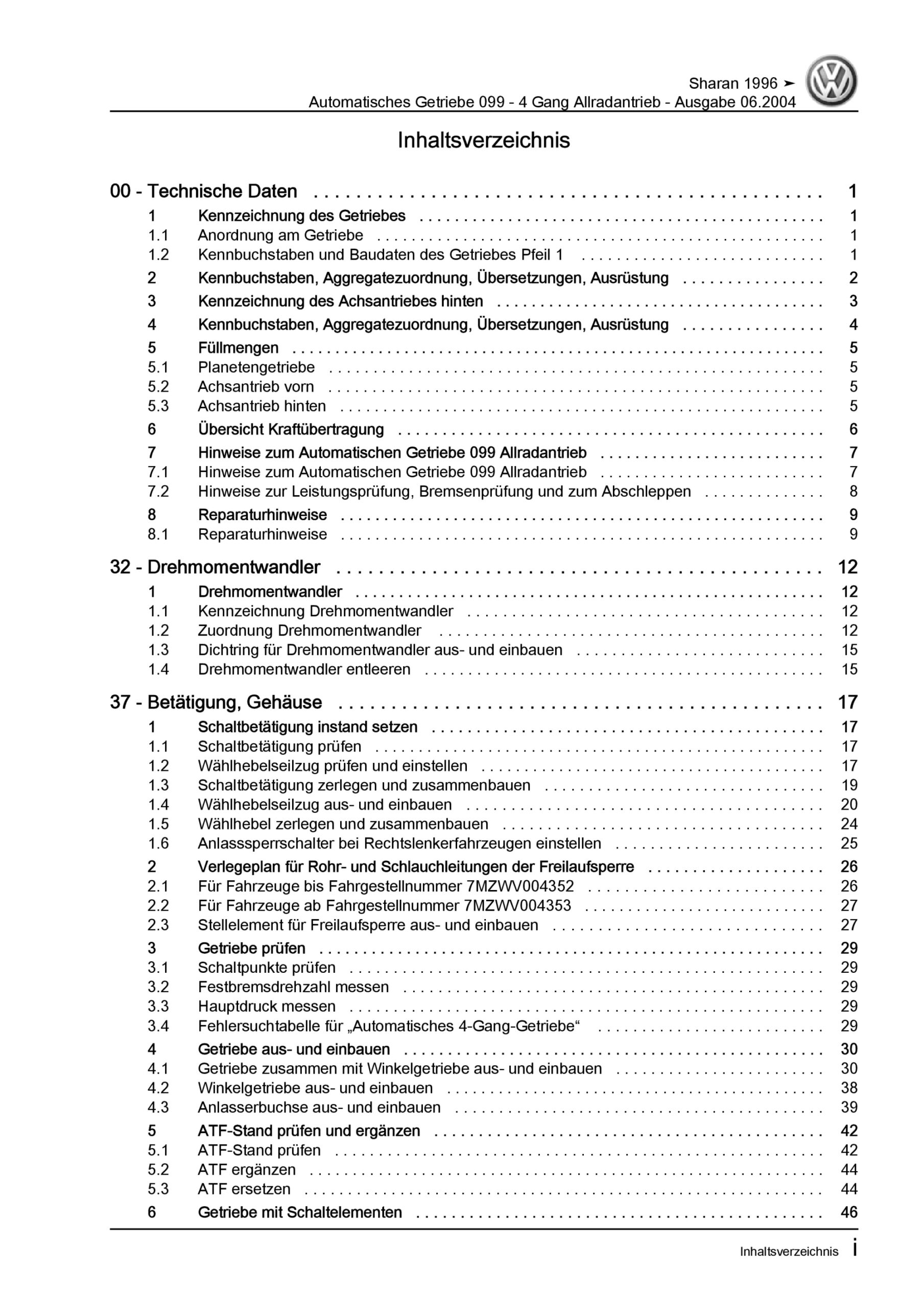 Offizieller VW Sharan I Reparaturleitfaden