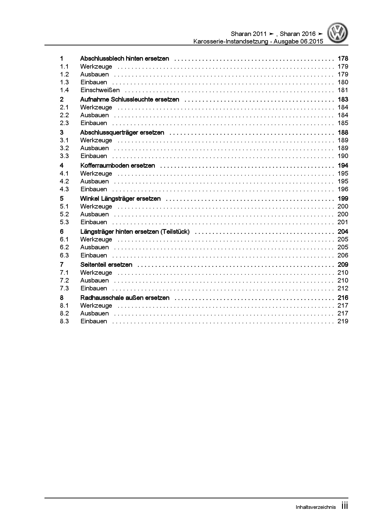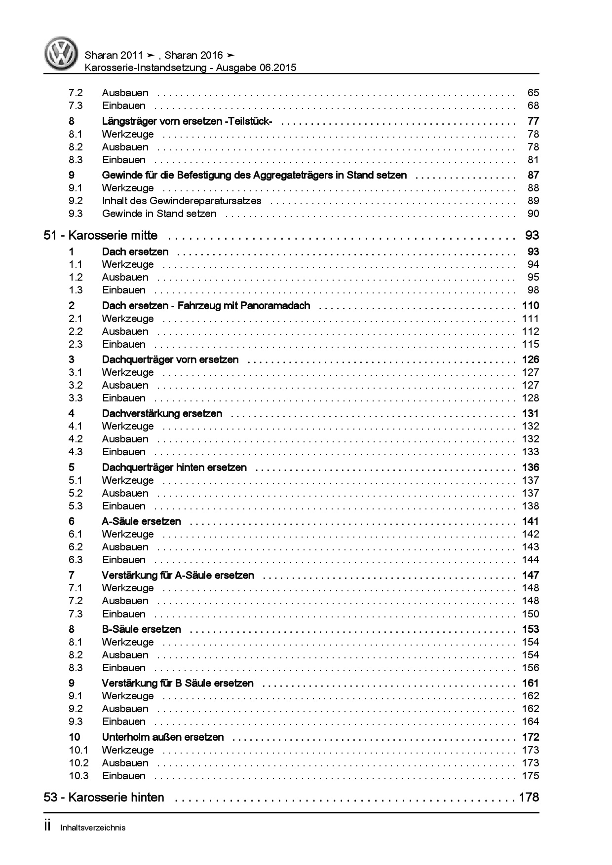 VW Sharan Typ 7N ab 2010 Karosserie Unfall Instandsetzung Reparaturanleitung