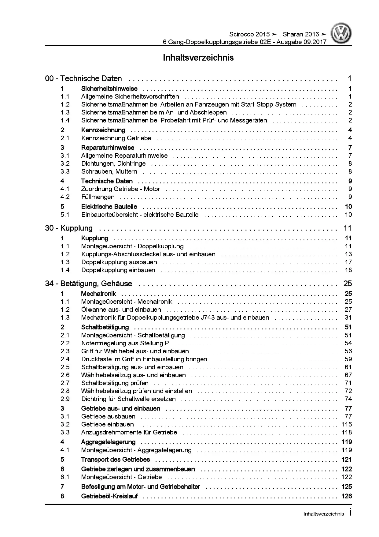 VW Sharan Typ 7N ab 2015 6 Gang Automatikgetriebe DSG DKG 02E Reparaturanleitung