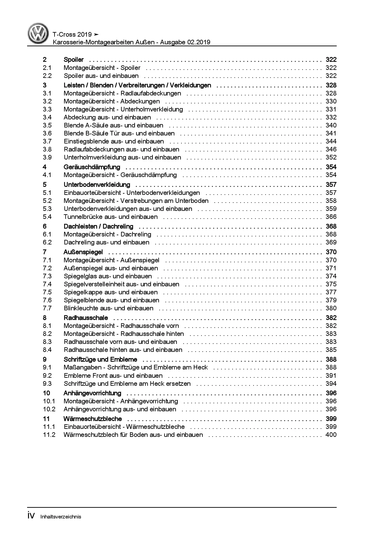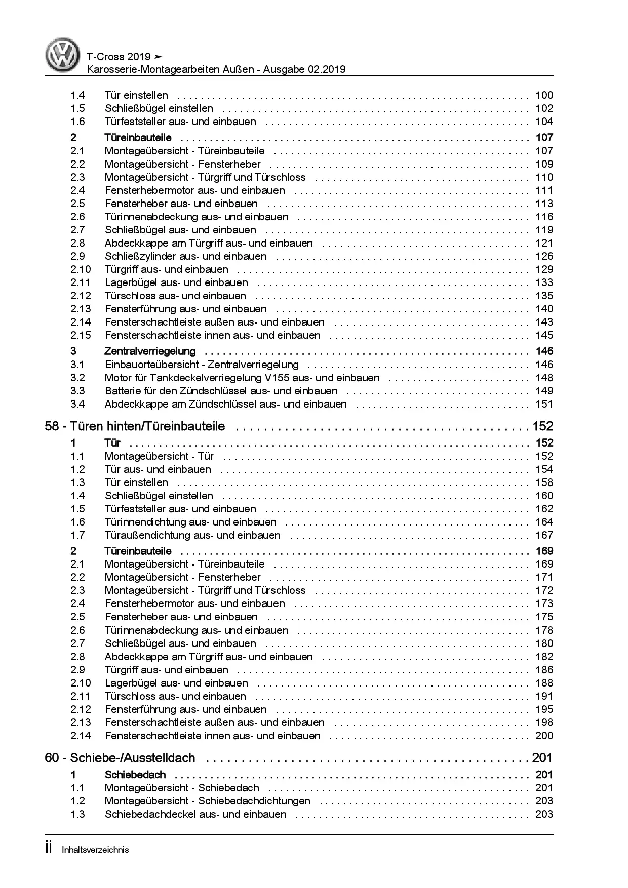 VW T-Cross Typ C1 ab 2018 Karosserie Montagearbeiten Außen Reparaturanleitung