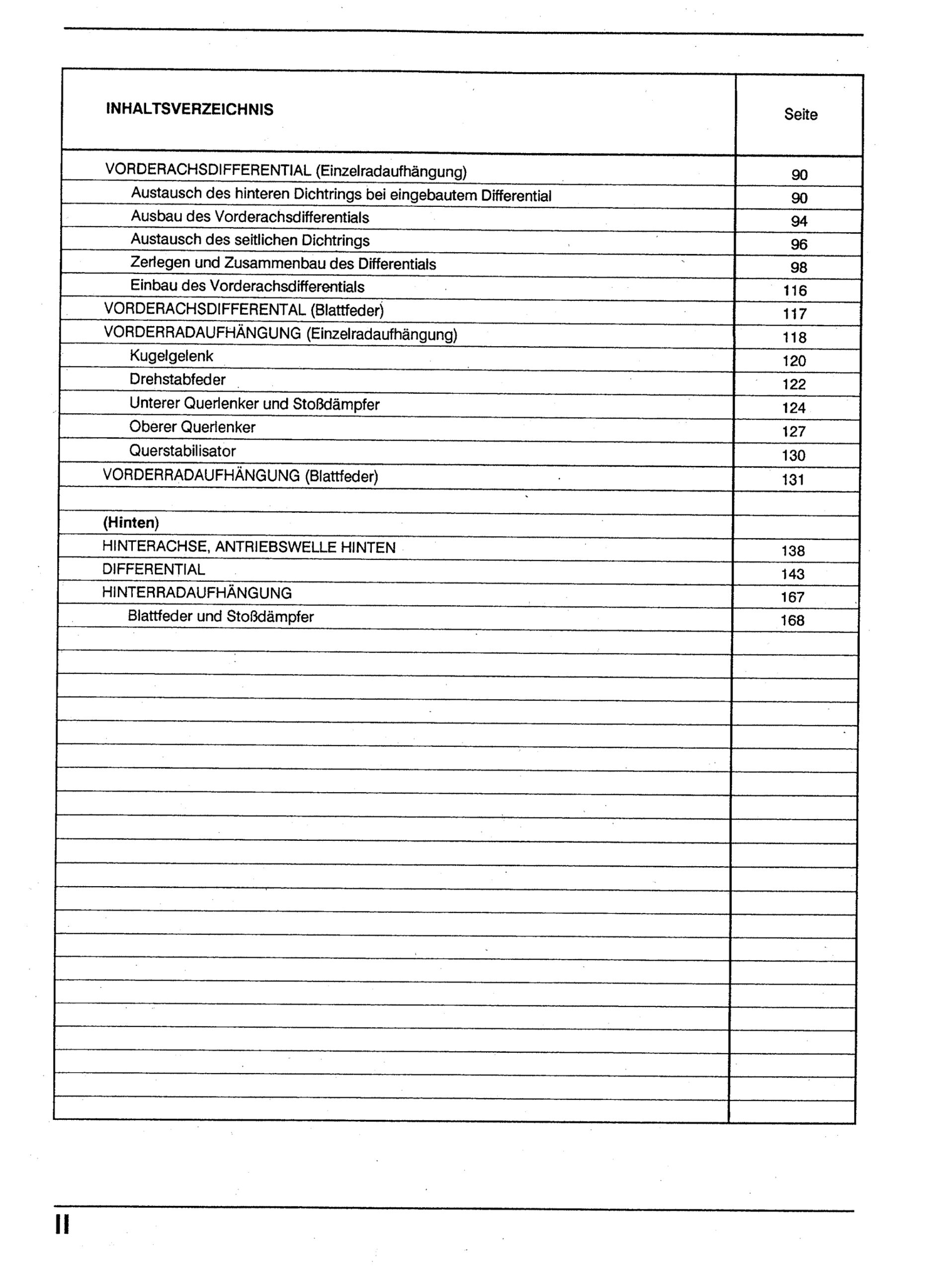 VW Taro Typ 7A 1989-1997 Radaufhängung Achsen Reparaturanleitung
