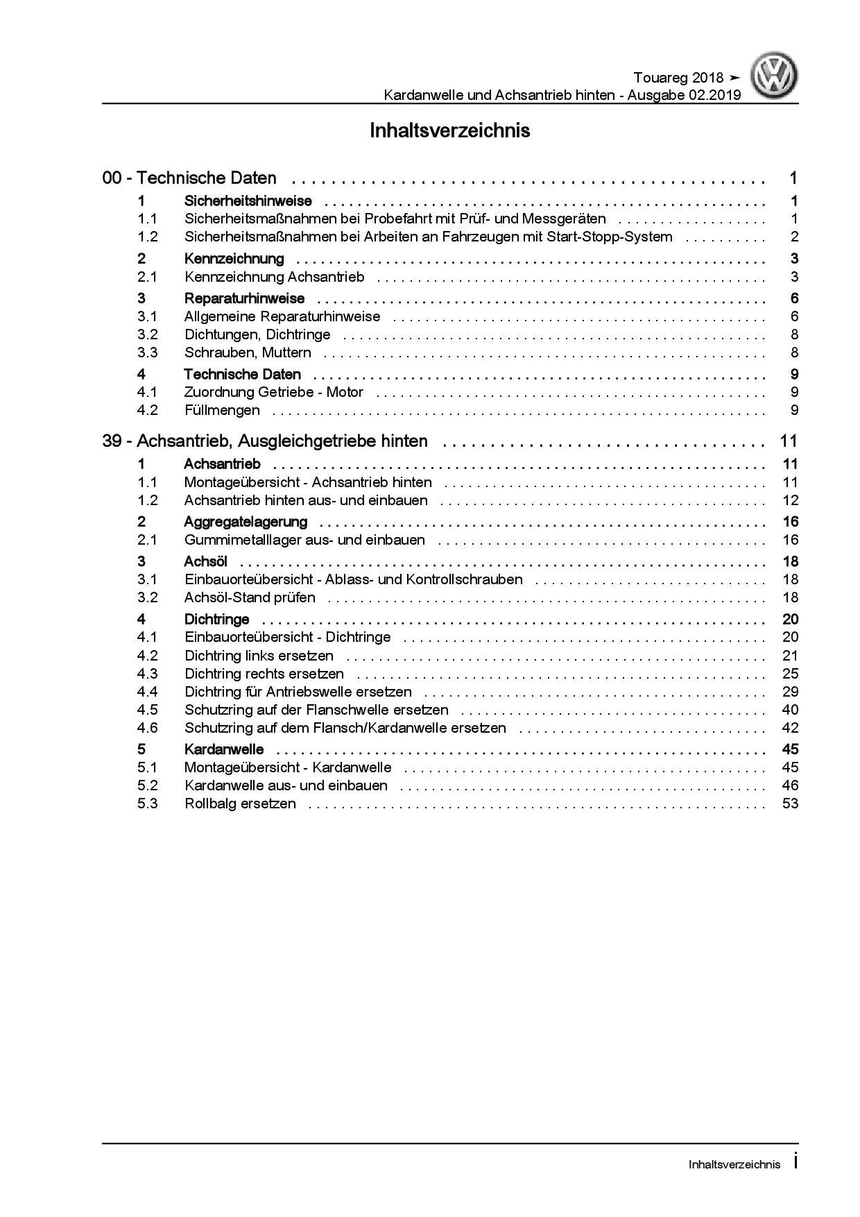 VW Touareg Typ CR ab 2018 Kardanwelle Achsantrieb hinten Reparaturanleitung