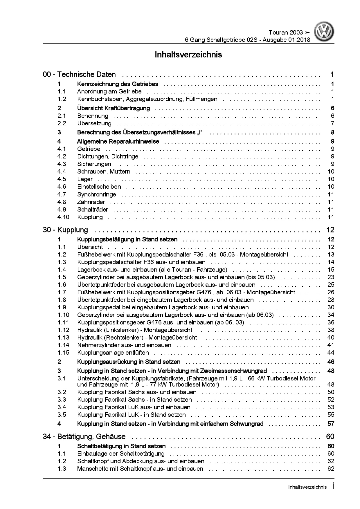 Offizieller VW Touran I Reparaturleitfaden