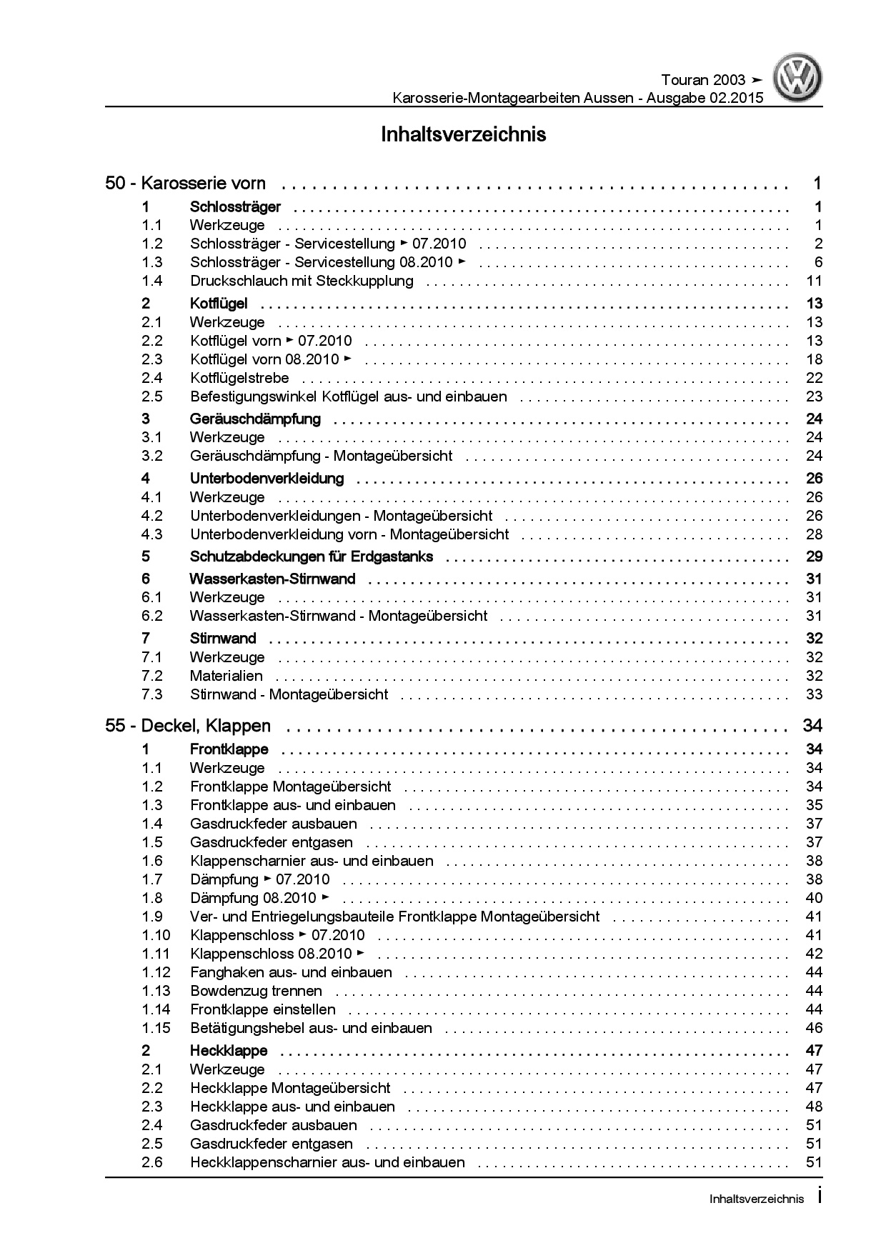 Offizieller VW Touran I Reparaturleitfaden