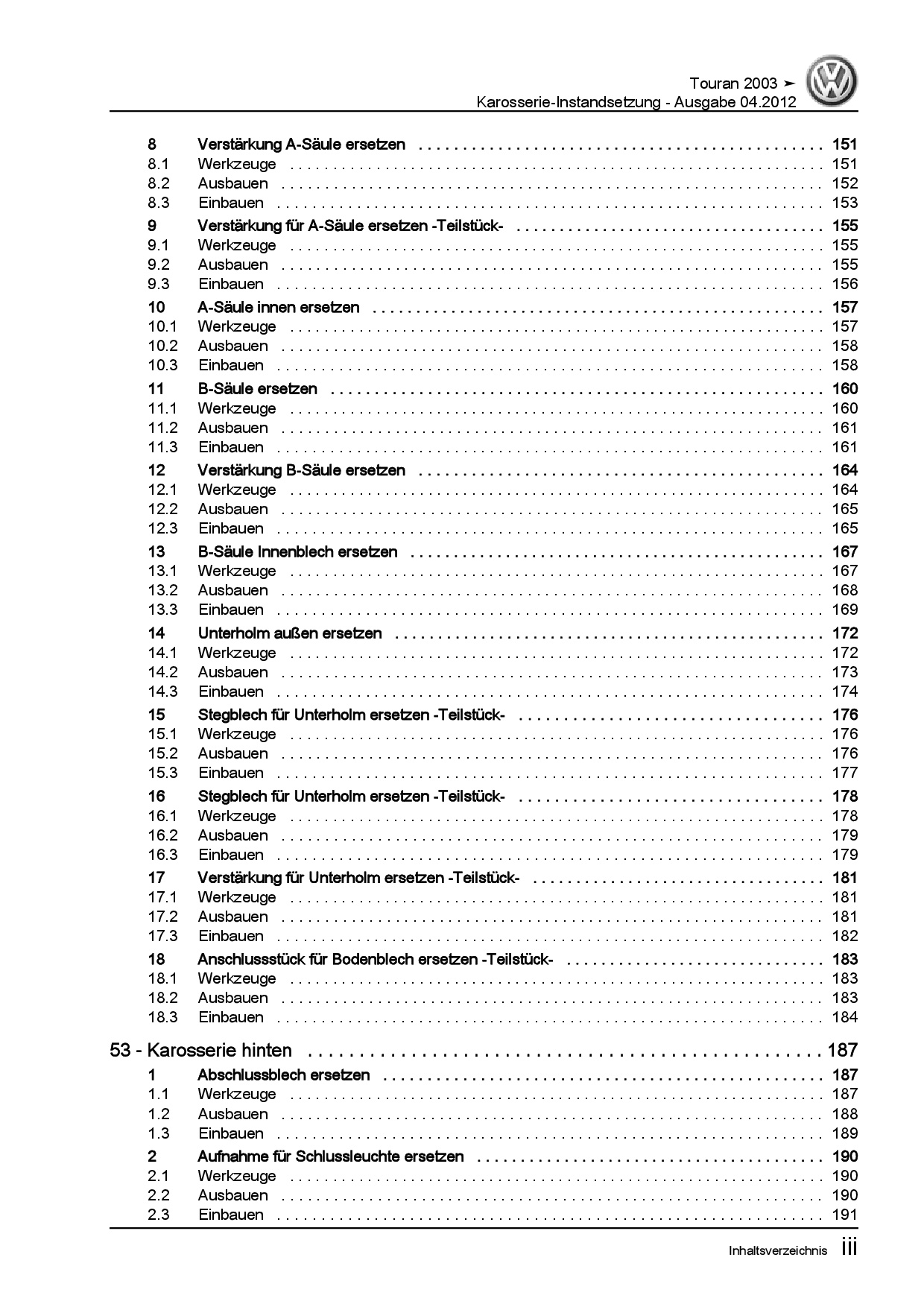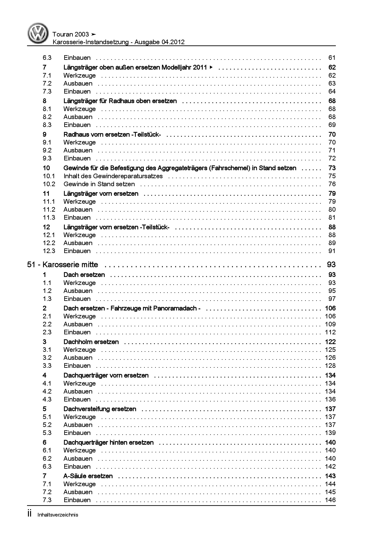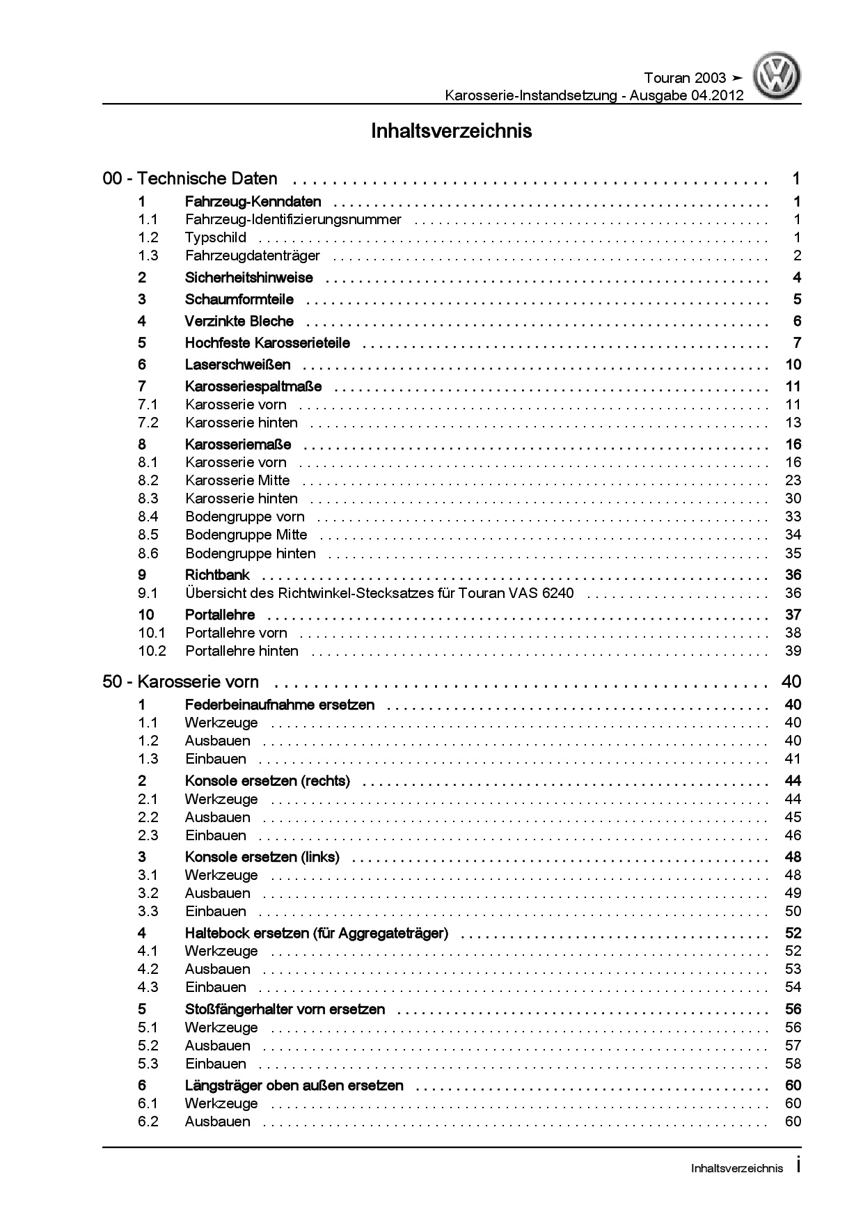 Offizieller VW Touran I Reparaturleitfaden