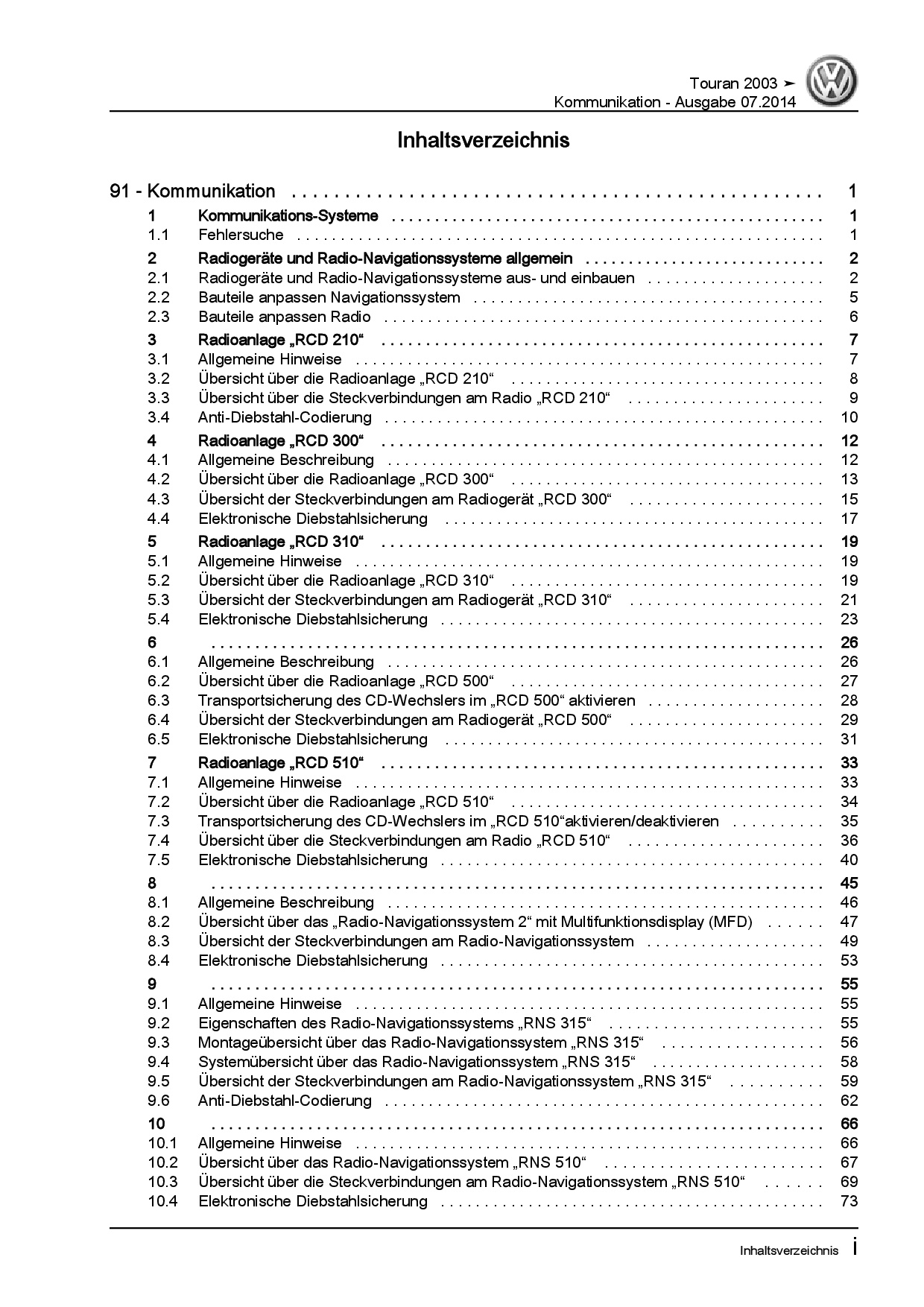 Offizieller VW Touran I Reparaturleitfaden