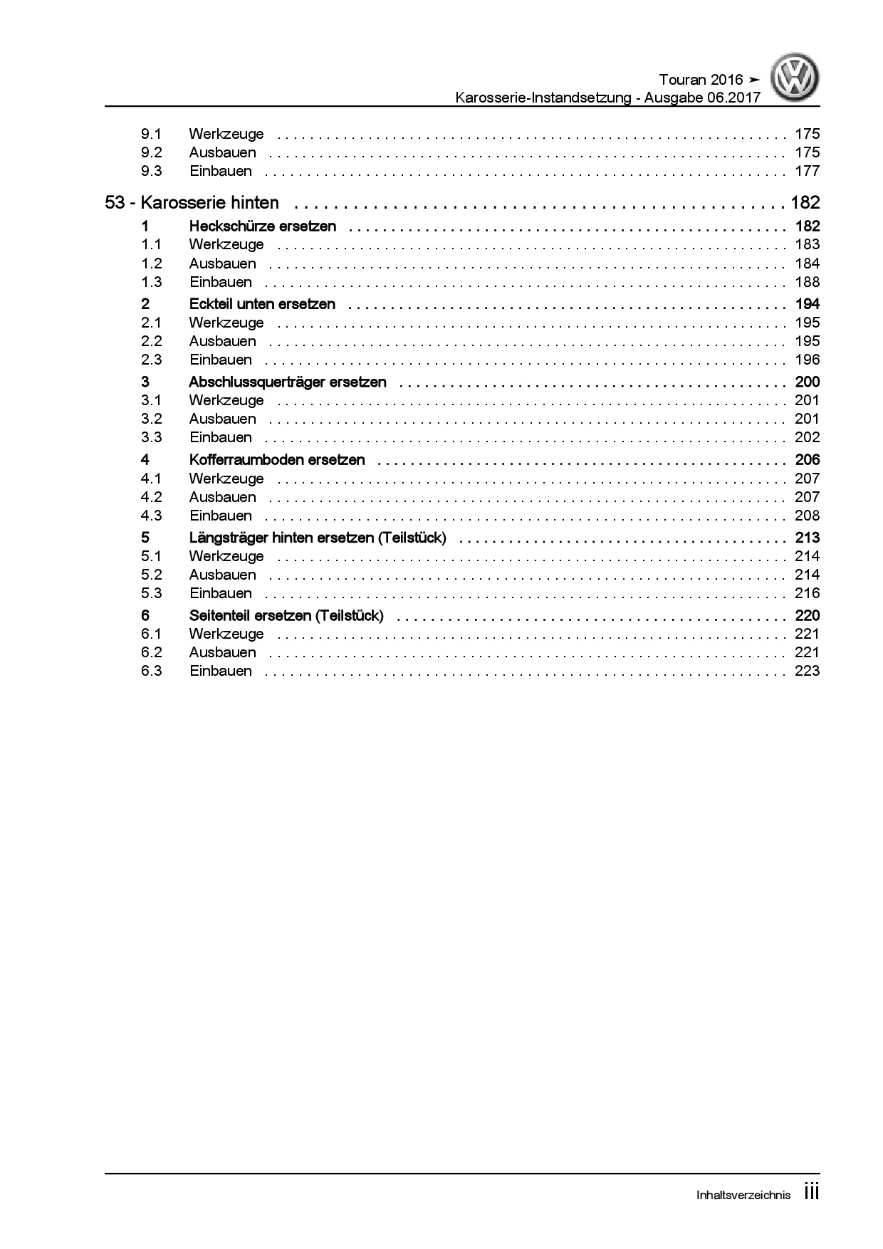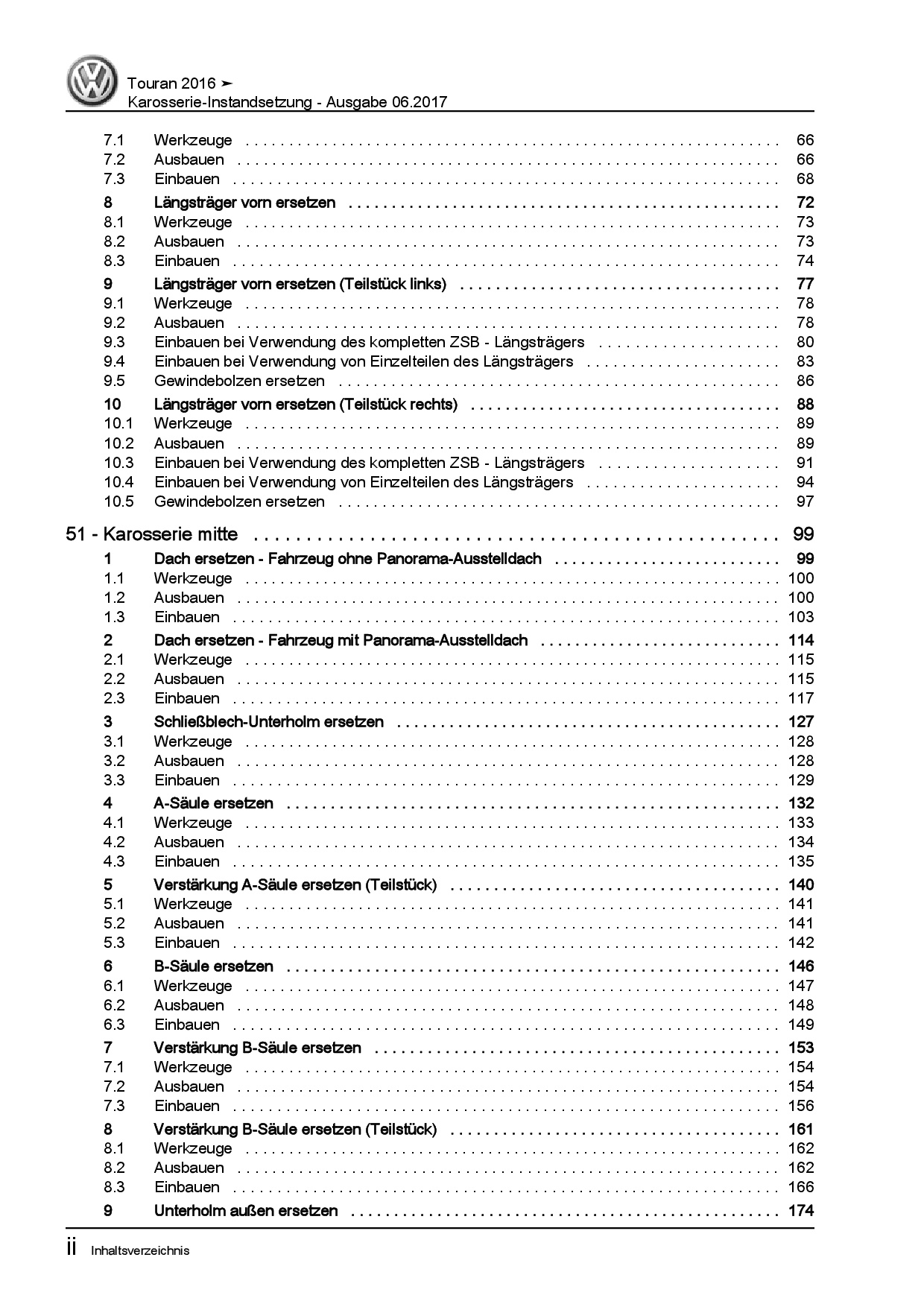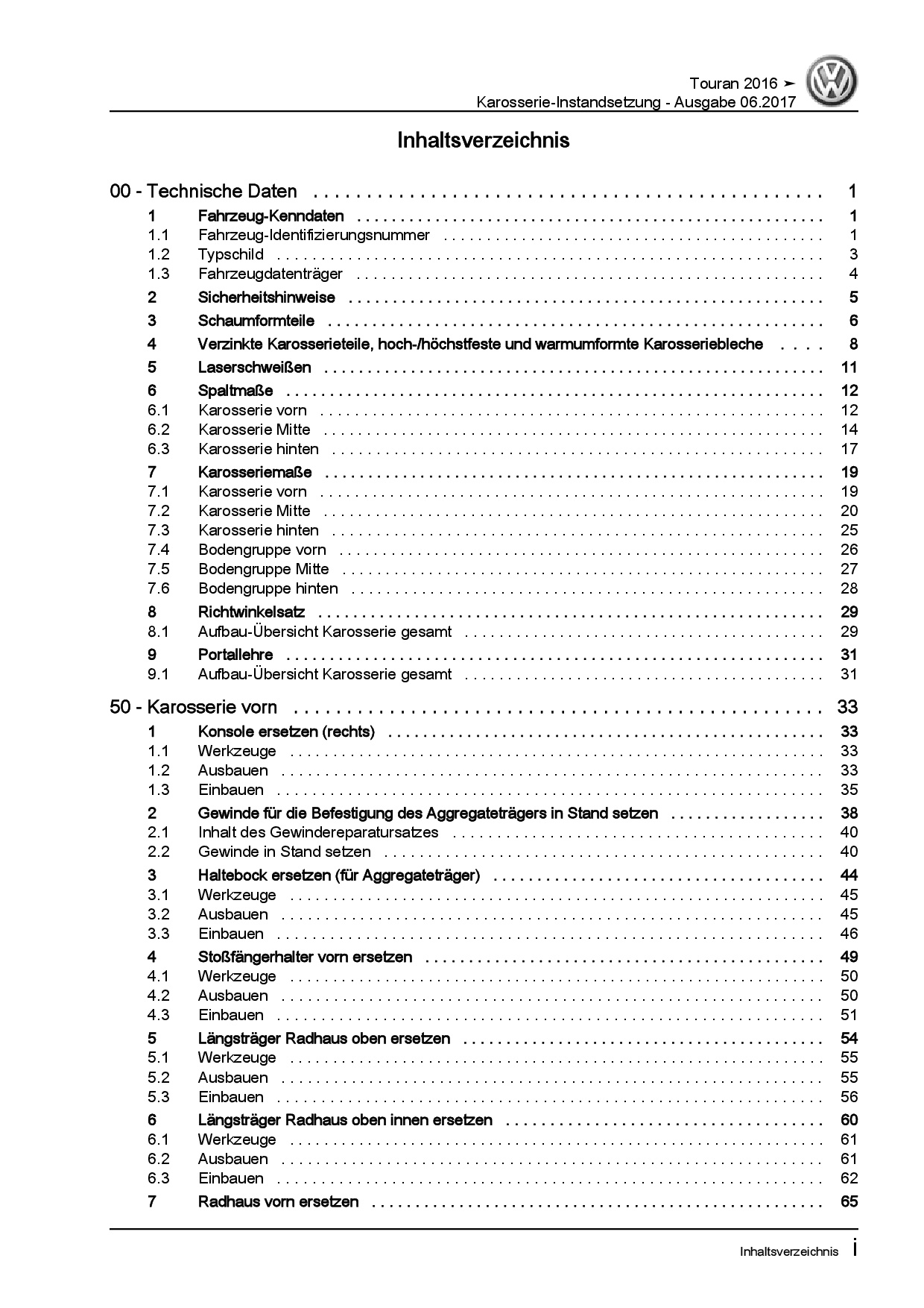 VW Touran Typ 5T ab 2015 Karosserie Unfall Instandsetzung Reparaturanleitung