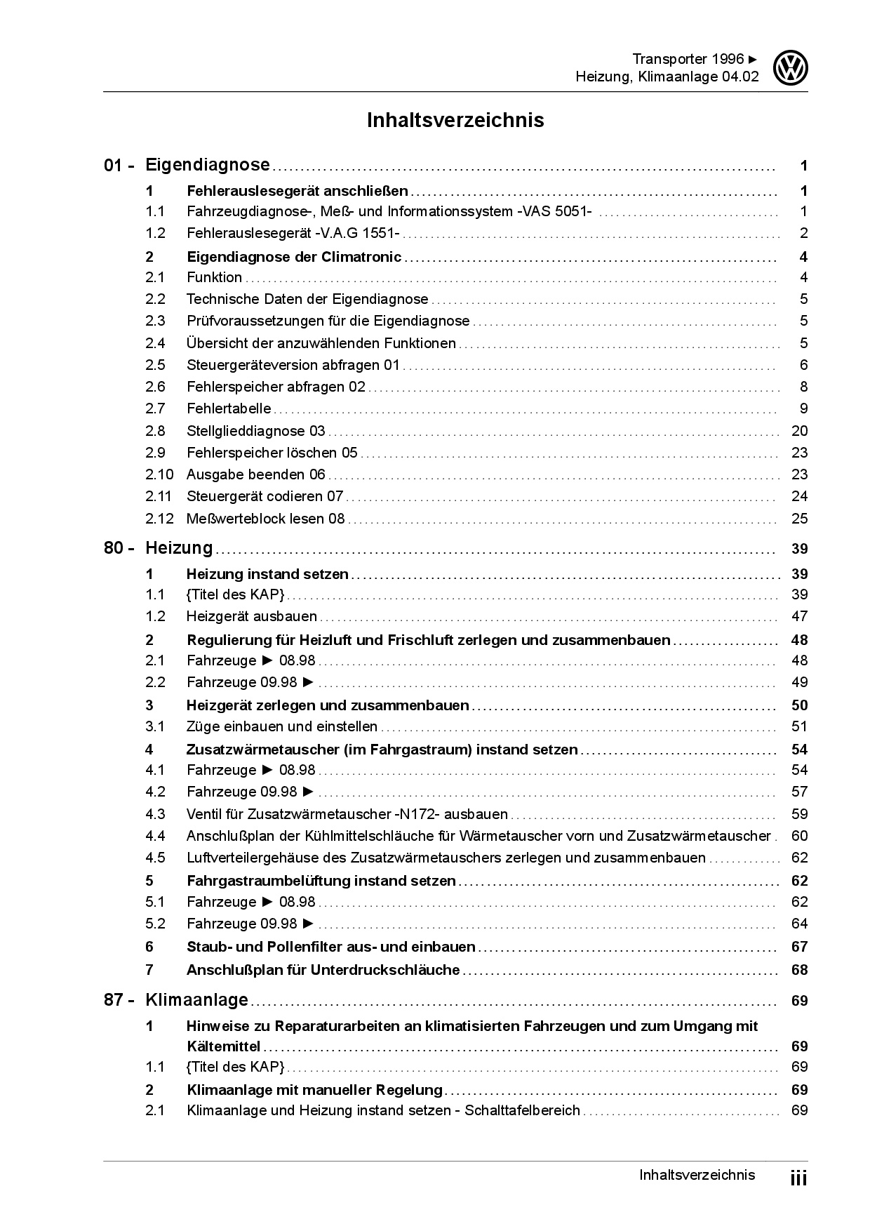 Offizieller VW Transporter T4 Reparaturleitfaden