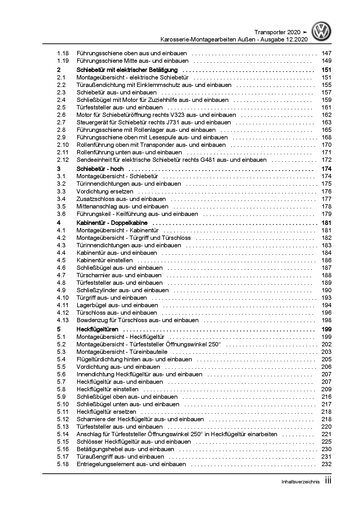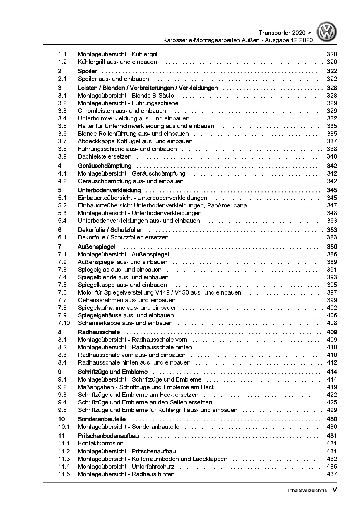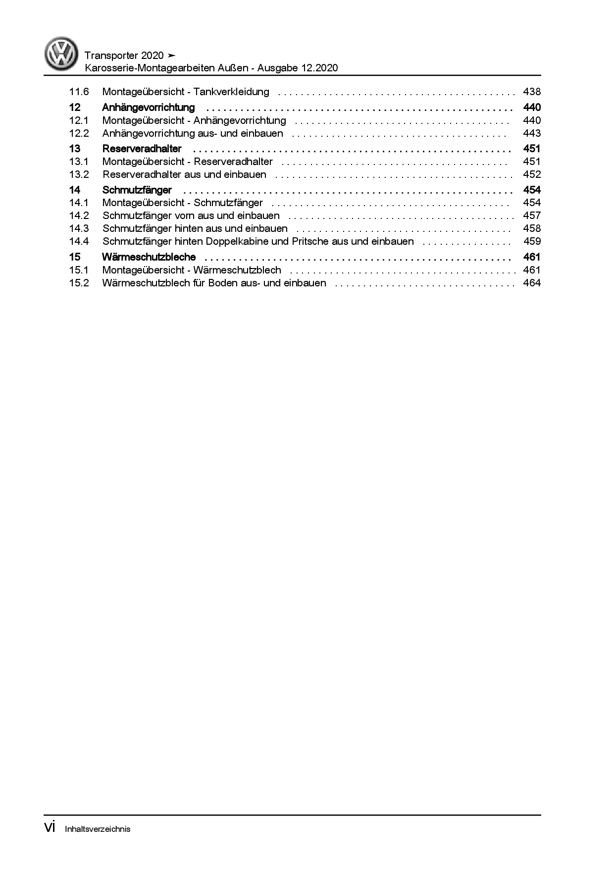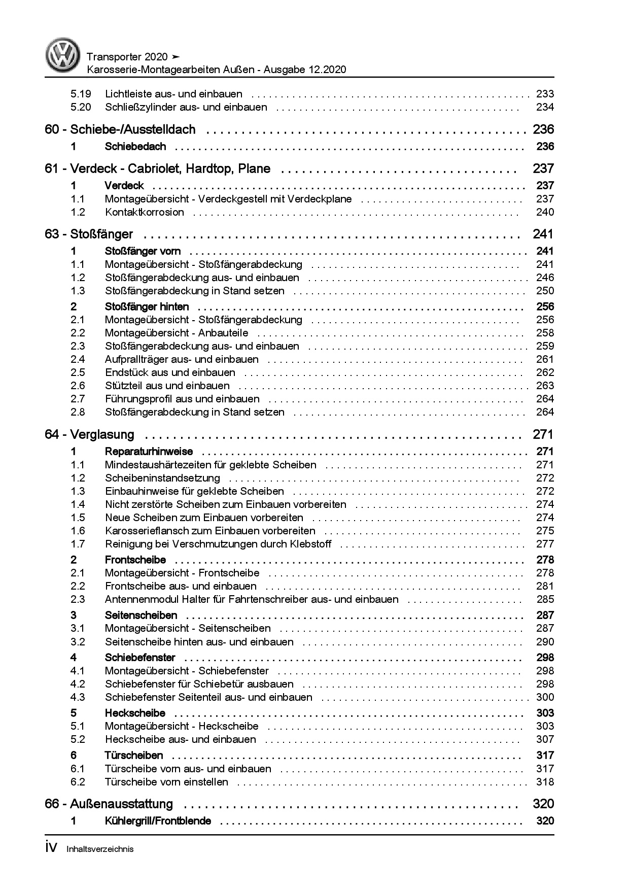 VW Transporter T6.1 ab 2019 Karosserie Montagearbeiten Außen Reparaturanleitung