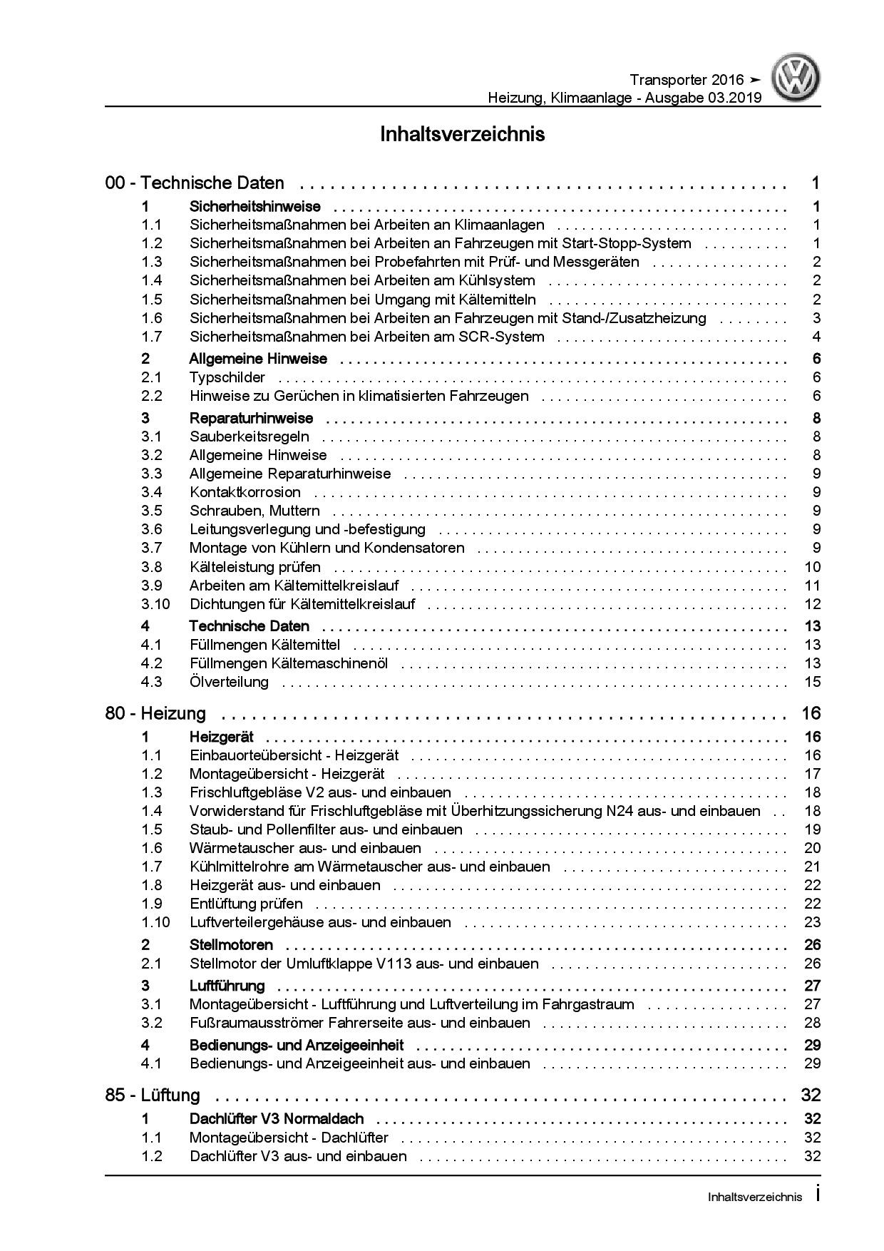Diese Reparaturanleitung enthält detaillierte Beschreibungen zu Aus- und Einbauarbeiten, Einstell- und Prüfarbeiten sowie zahlreiche Grafiken, Bilder und Explosionszeichnungen. Die Kunststoffringbindung ermöglicht ein problemloses Umschlagen bis zu 180°.