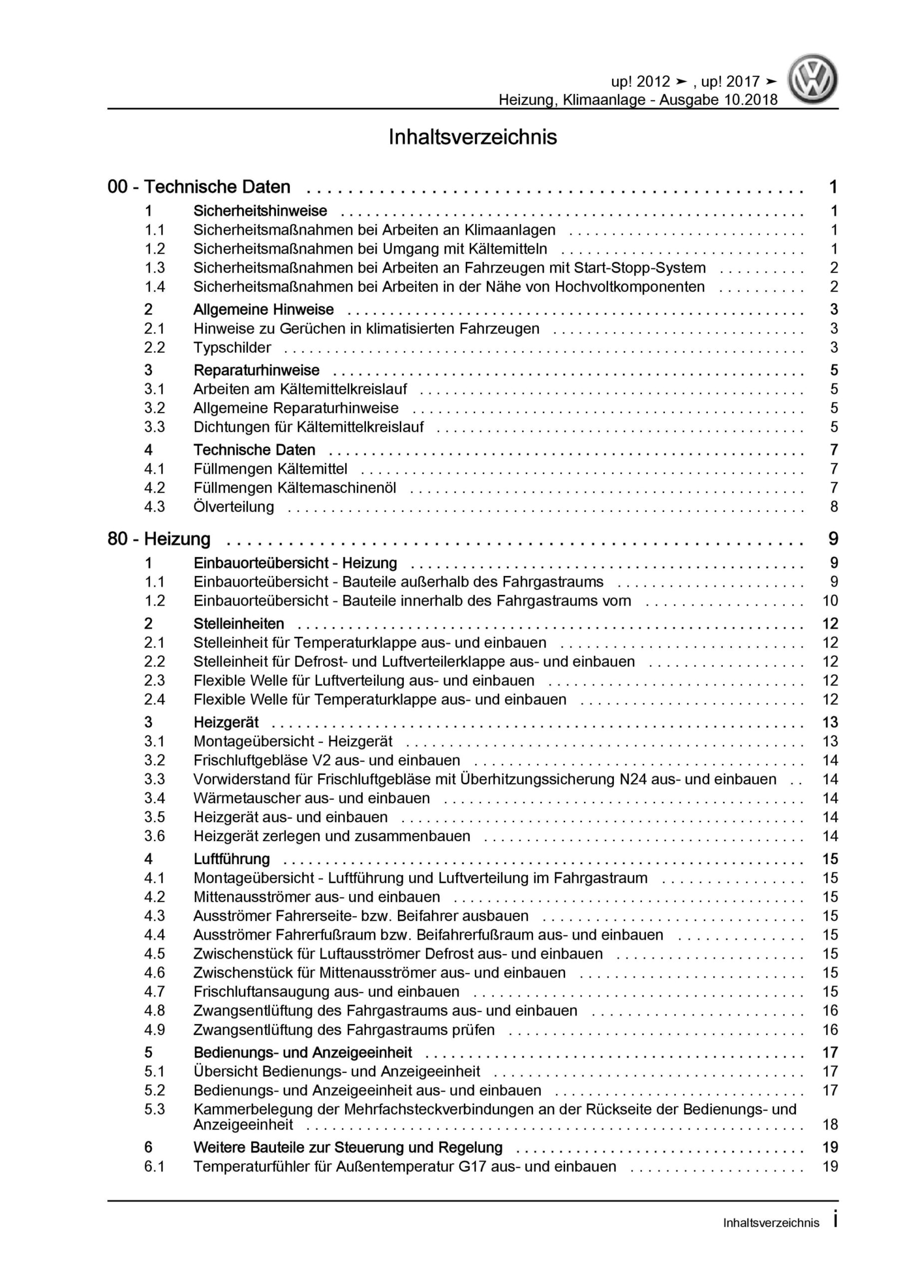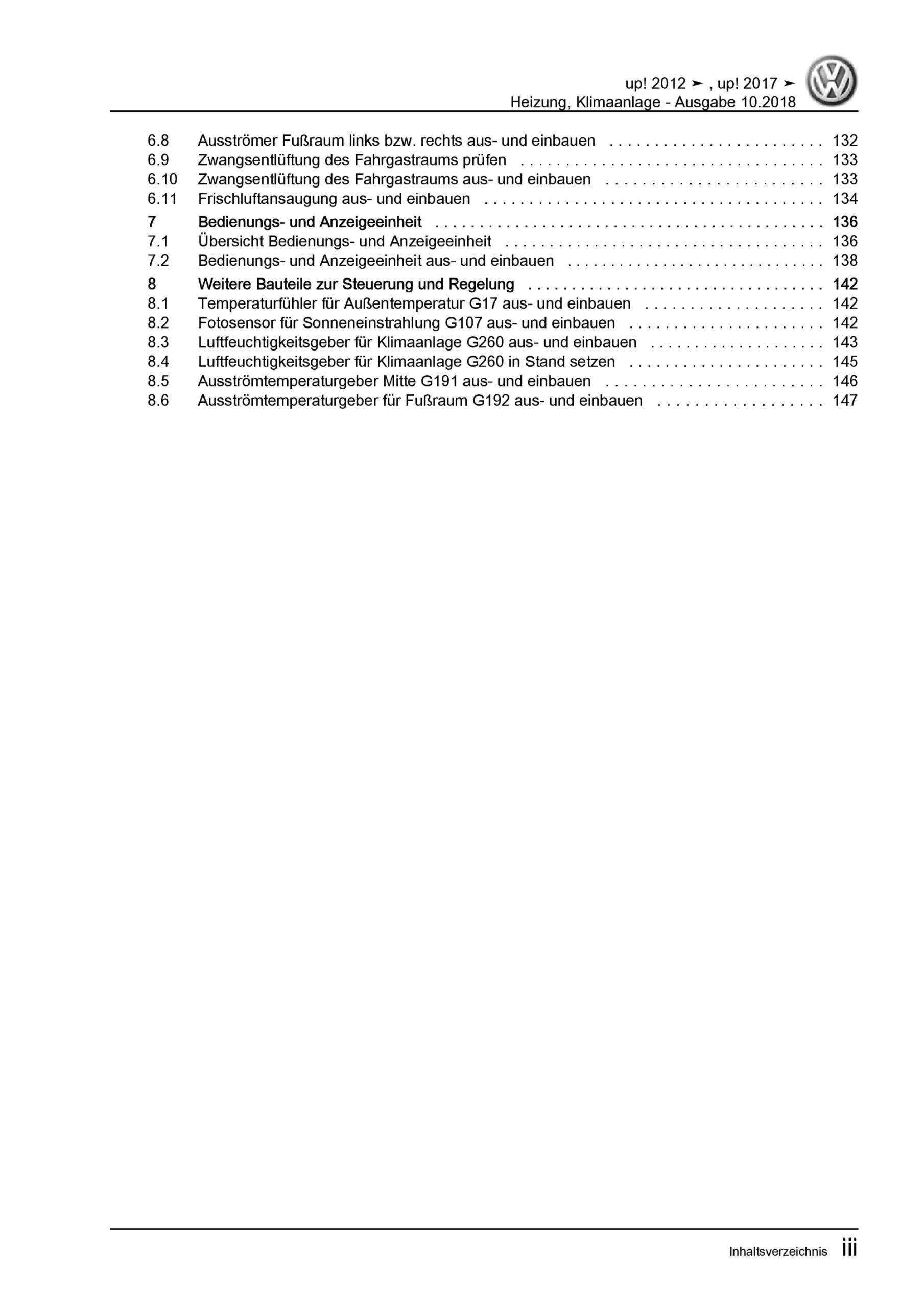 VW Up! Typ 121 2011-2016 Heizung Belüftung Klimaanlage Reparaturanleitung
