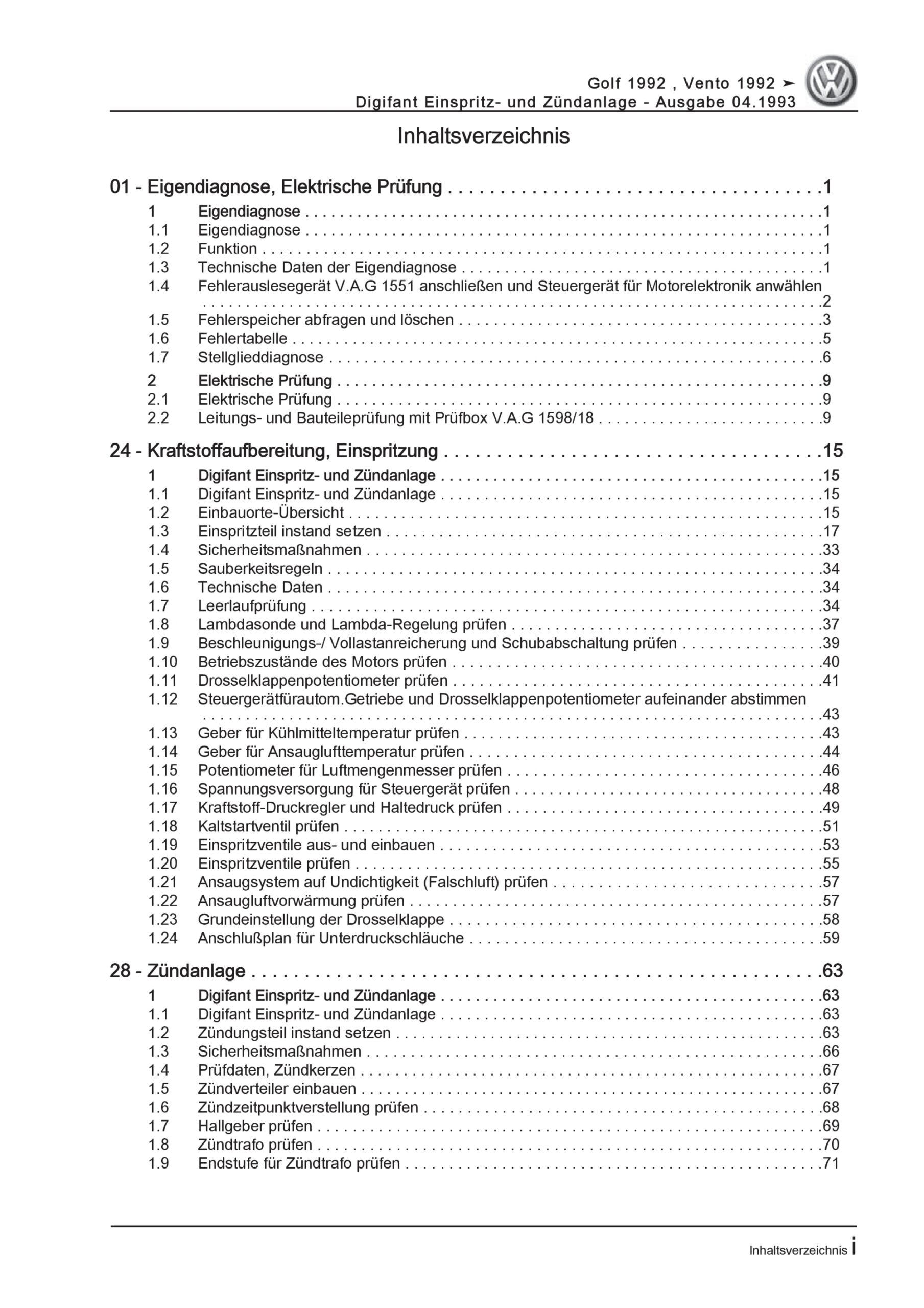 VW Vento Typ 1H (92-98) Digifant Einspritz- Zündanlage 115 PS Reparaturanleitung